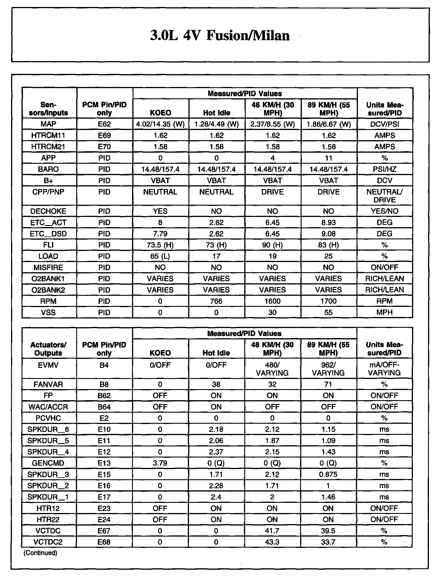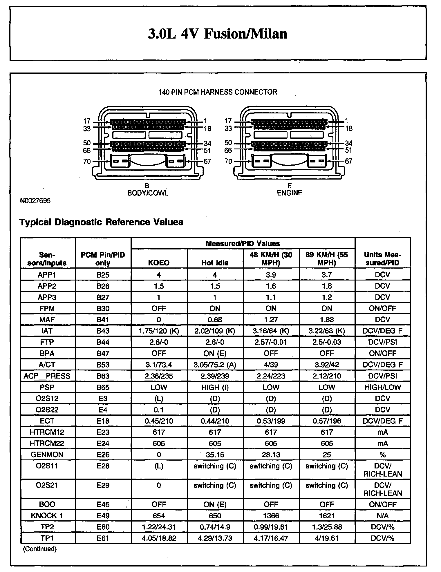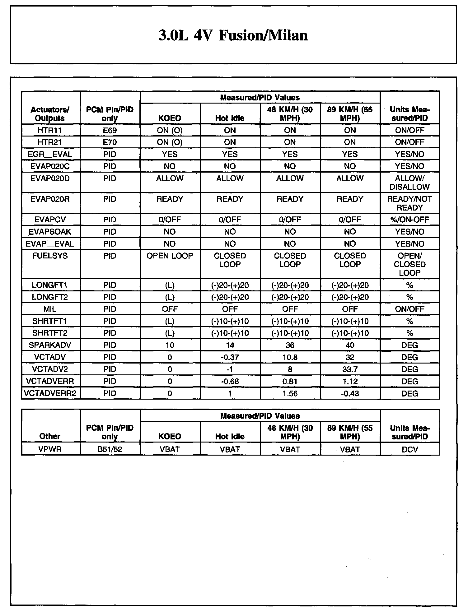 Home >> Ford >> 2008 >> Fusion FWD V6-3.0L >> Repair and Diagnosis >> Powertrain Management >> Computers and Control Systems >> Testing and Inspection >> Scan Tool Testing and Procedures >> Typical Diagnostic Reference Values
