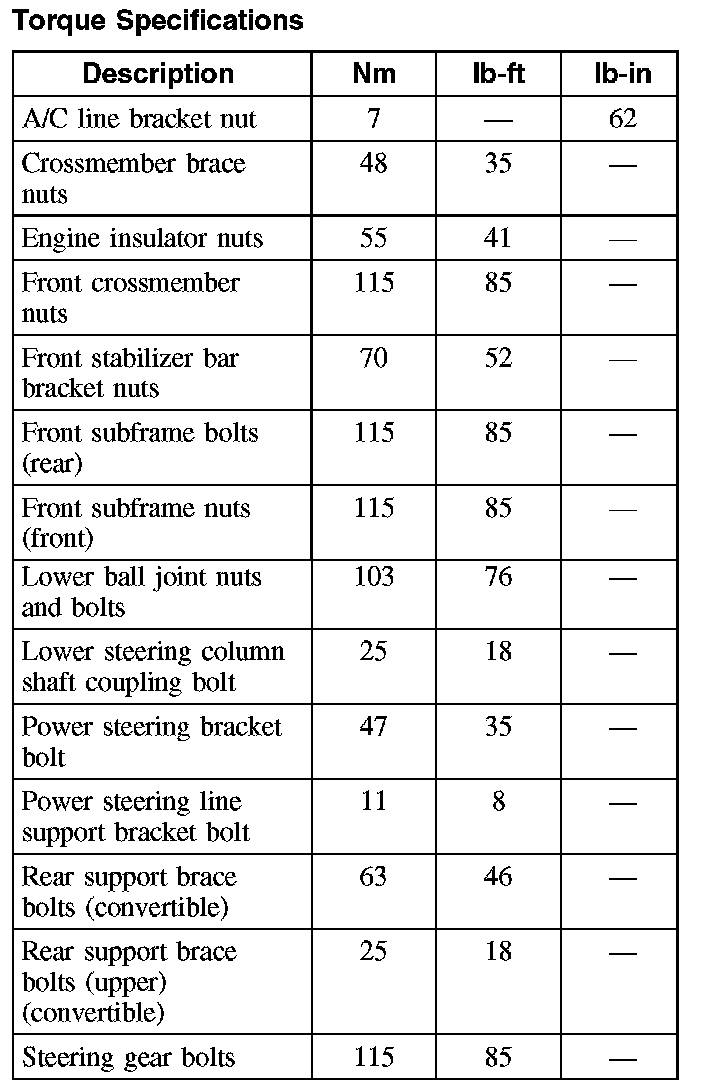 Torque Specifications: