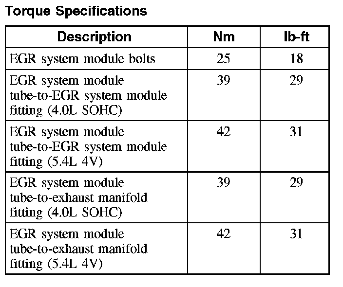 Torque Specifications: