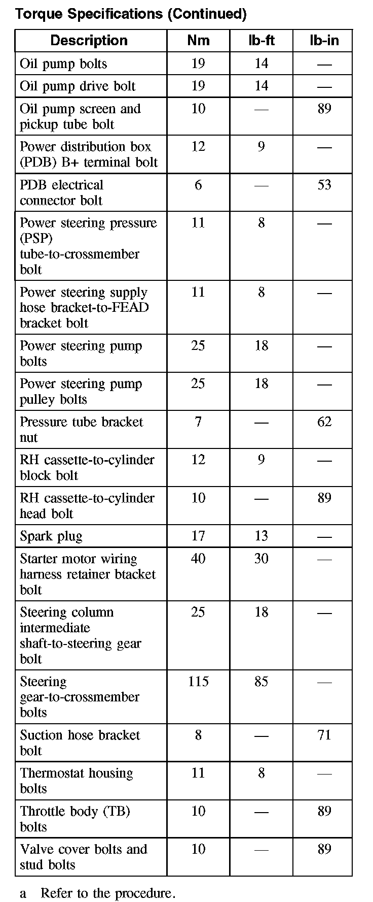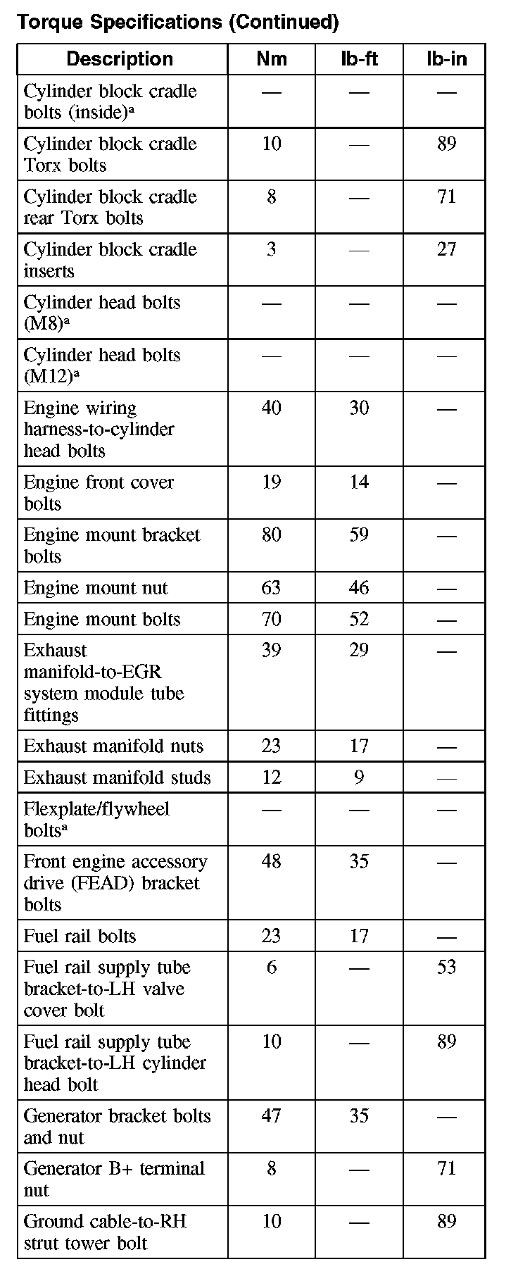 Torque Specifications