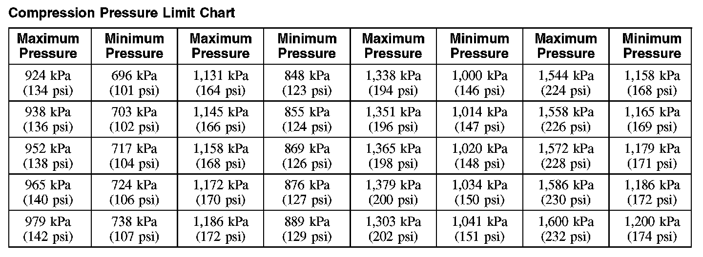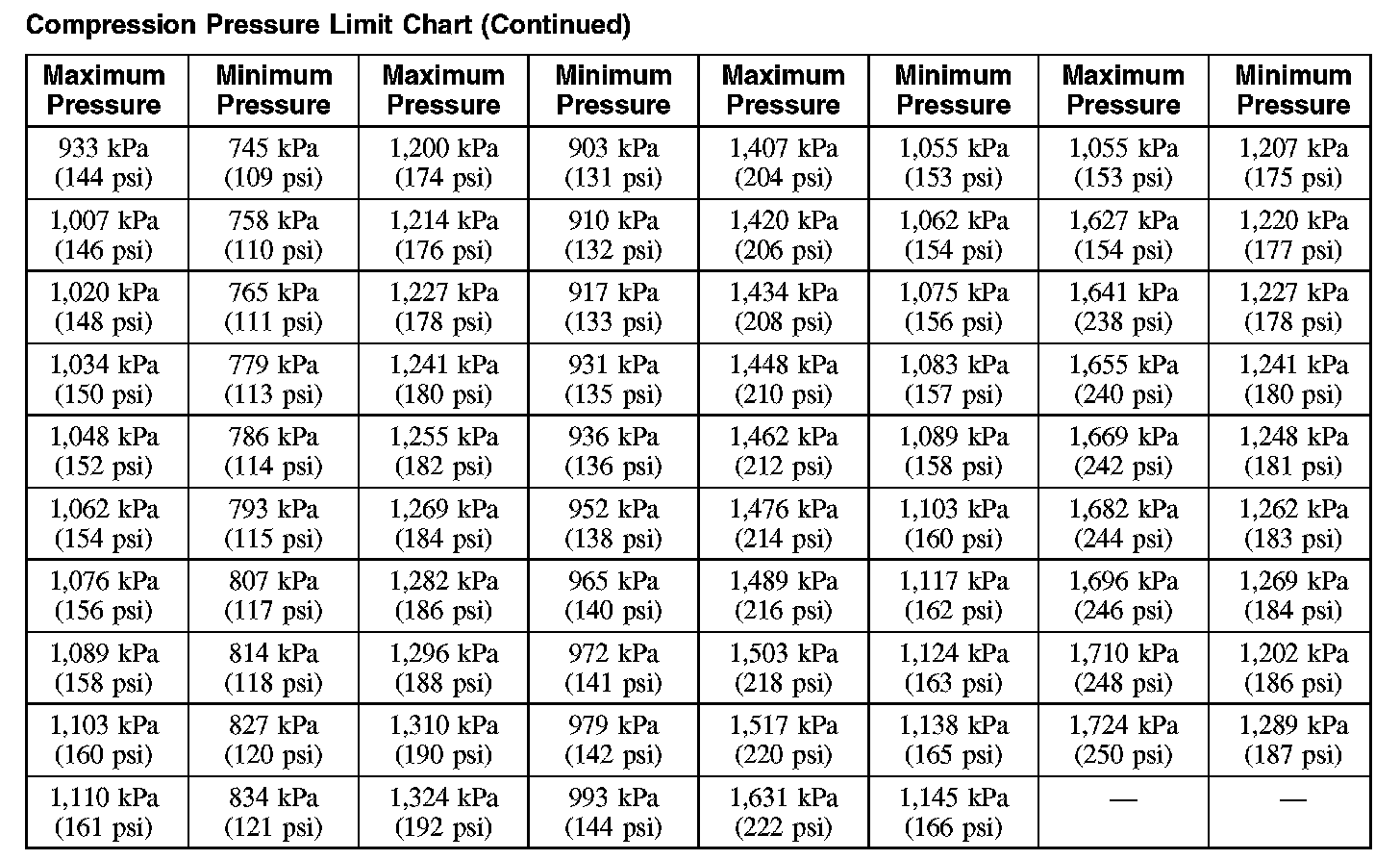 Use the Compression Pressure Limit Chart when checking cylinder compression so that the lowest reading is within 75% of the highest reading.
