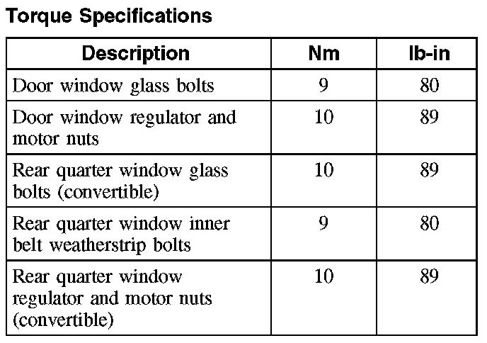 Torque Specifications: