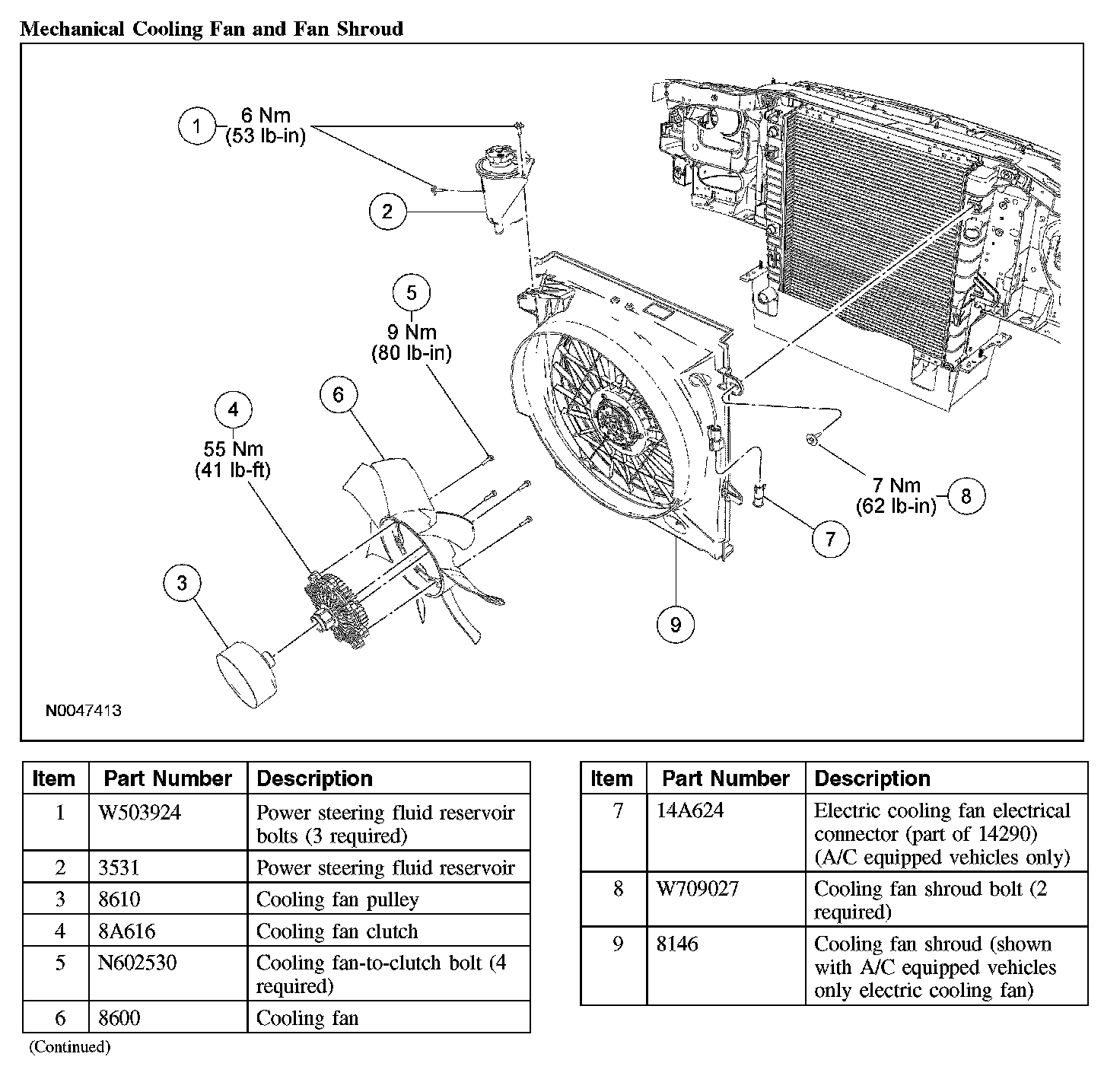 Radiator and Cooling Fan - Exploded View, 2.3L