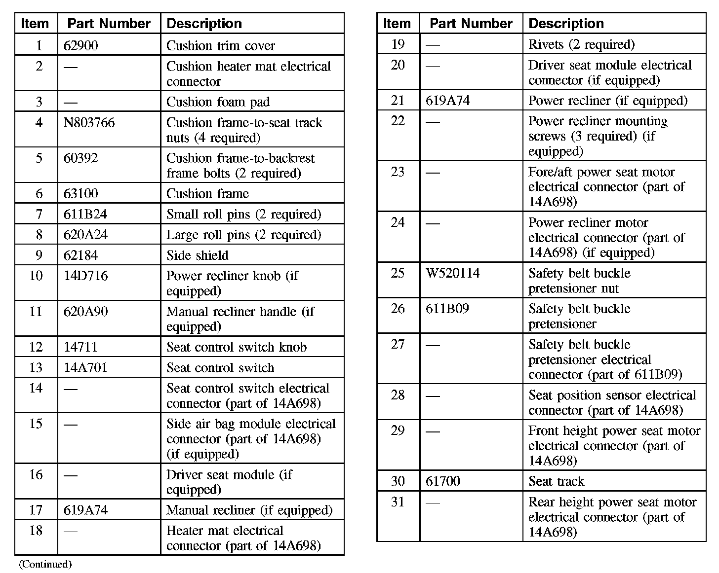 Driver Front Seat Cushion (Part 1):