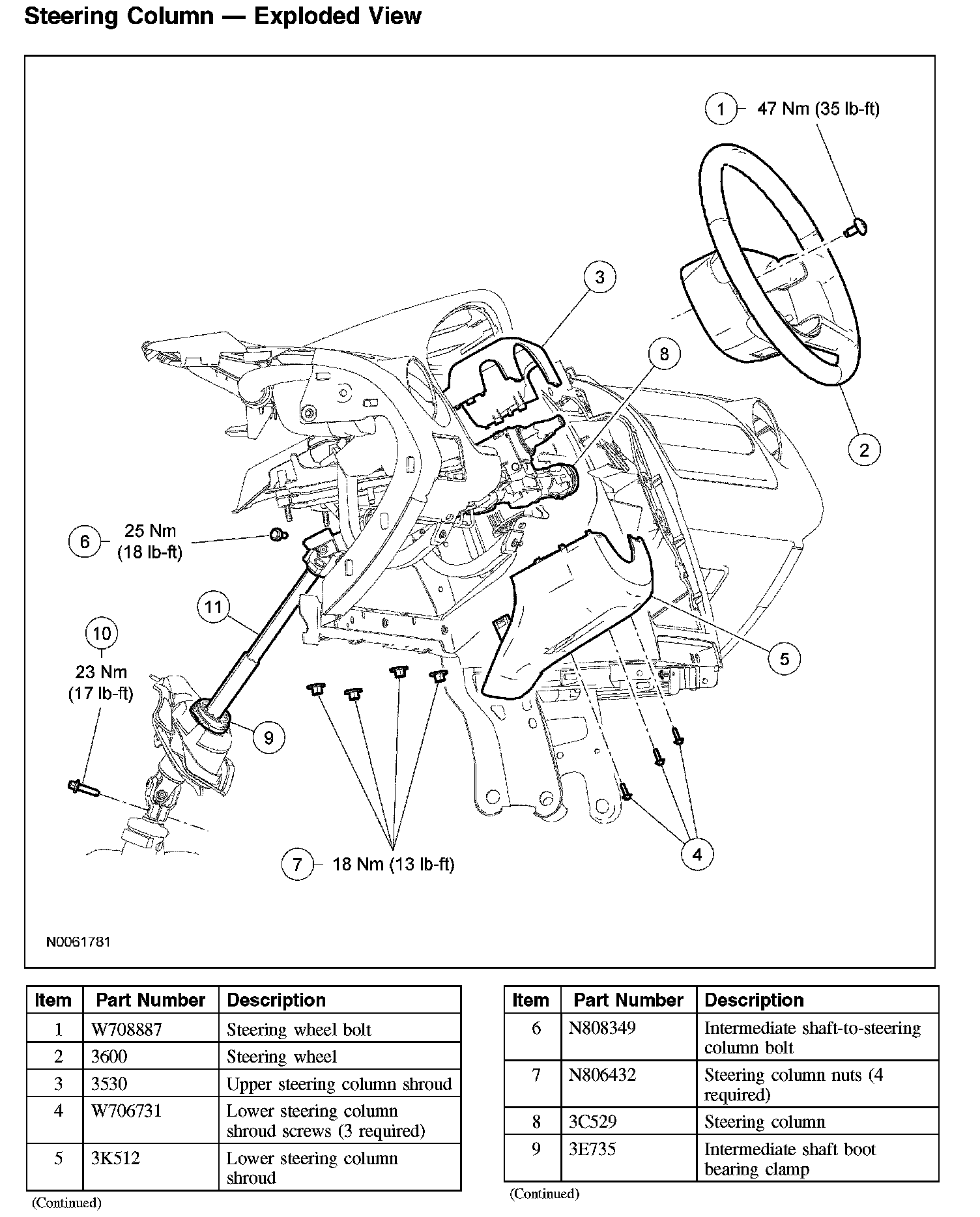 Steering Column - Exploded View (Part 1):