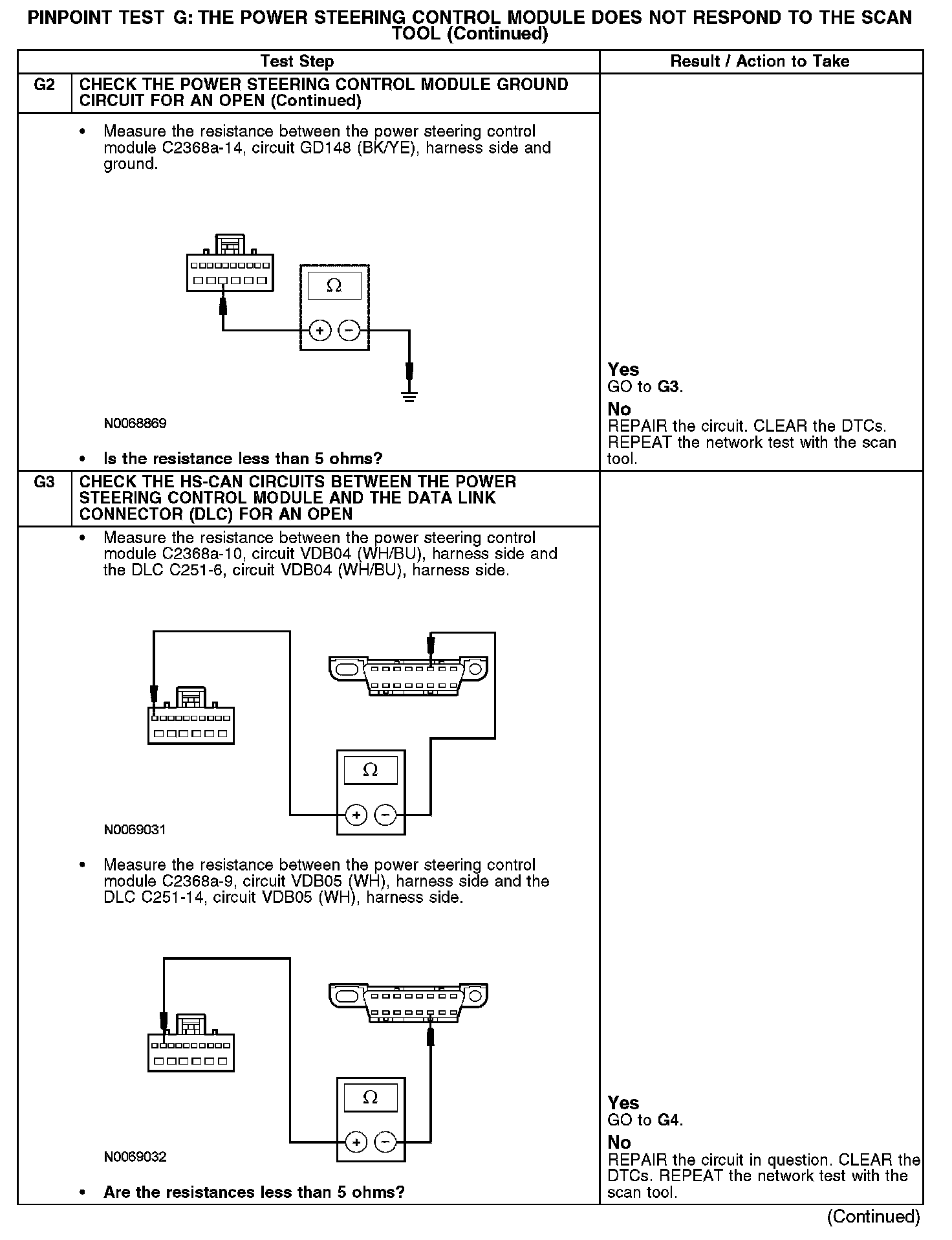 Test G: The Power Steering Control Module Does Not Respond To The Scan Tool