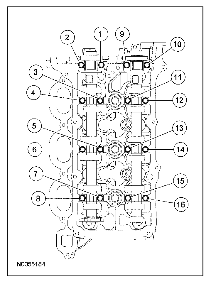 LH Camshaft Bearing Cap Bolts 10 Nm (89 lb-in)