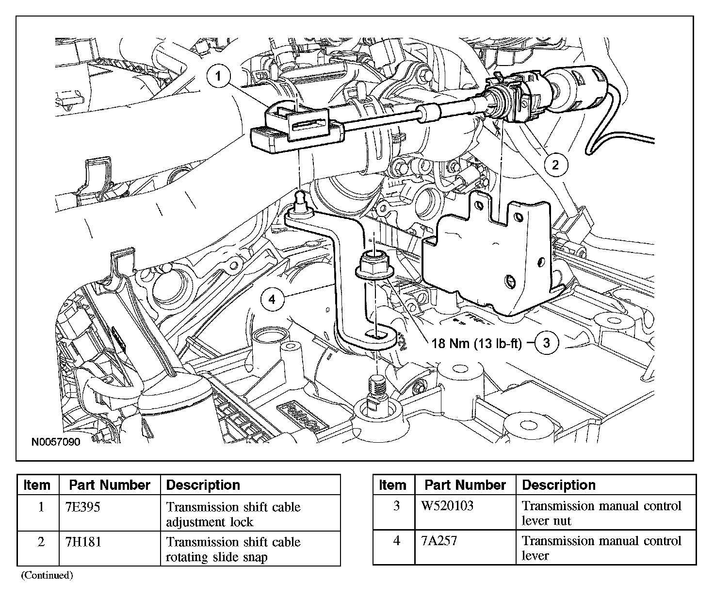 3. Disconnect the transmission shift cable and adjustment lock from the transmission manual control lever.