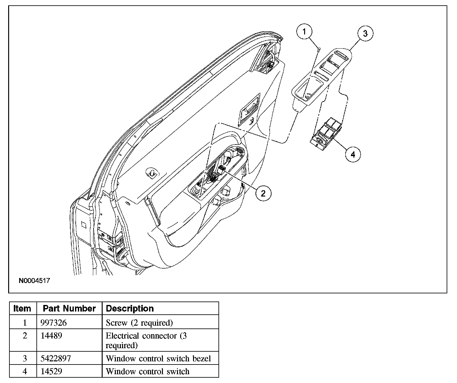 1. Remove the window regulator control switch bezel.