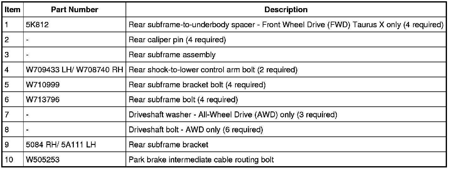 Home >> Ford >> 2008 >> Taurus FWD V6-3.5L >> Repair and Diagnosis >> Body and Frame >> Frame >> Subframe >> Rear Subframe >> Service and Repair >> Subframe - Rear