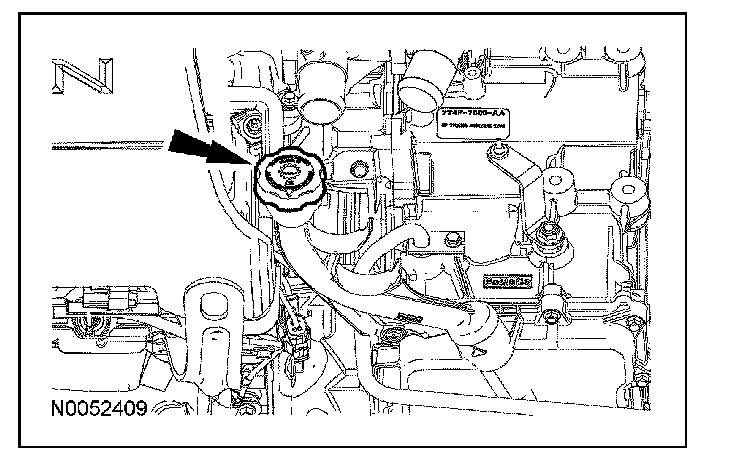 24. Route the coolant hoses in the transmission fluid filler tube.