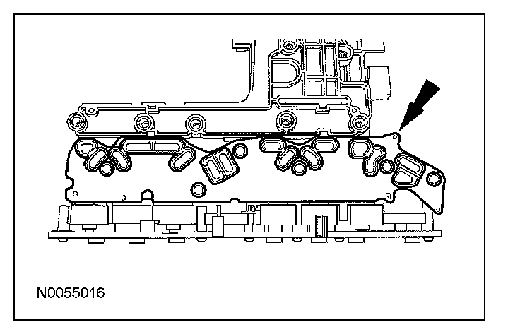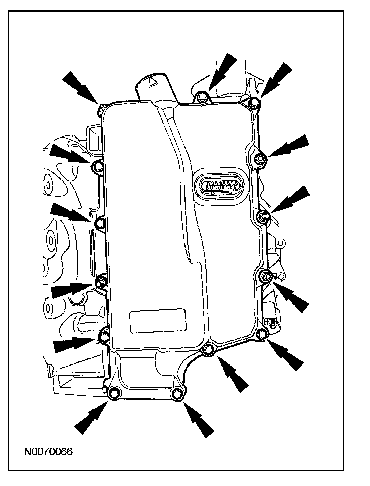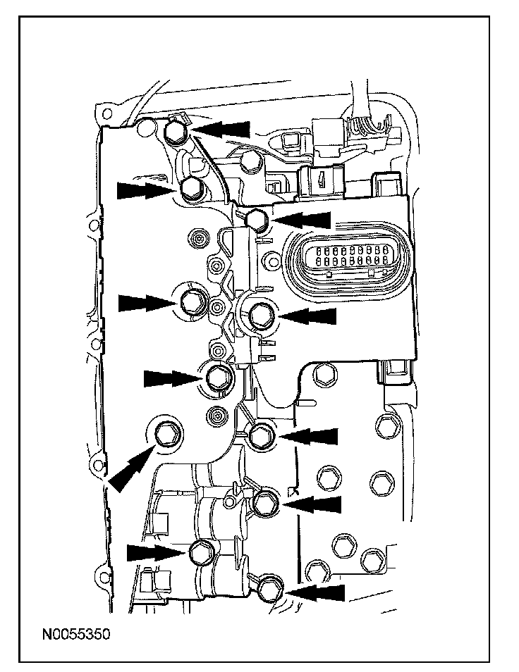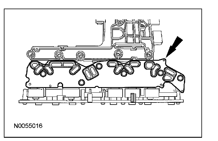 13. CAUTION: Inspect the 20-pin solenoid body connector seal to make sure that the seal is on the inside of the main control cover. Transmission fluid leak will occur.