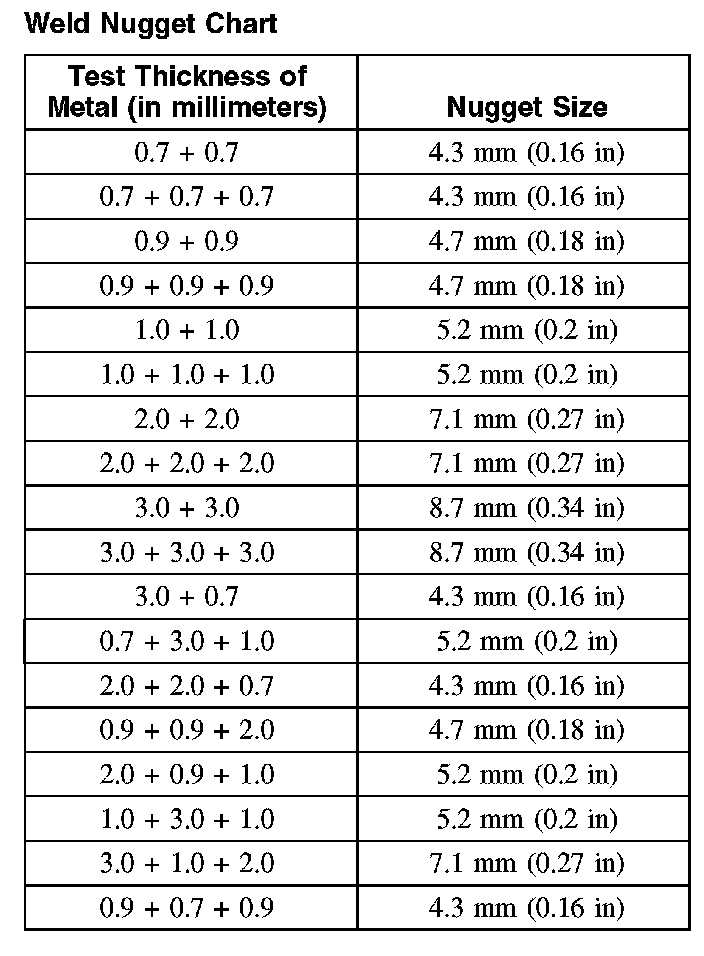 Weld Nugget Chart: