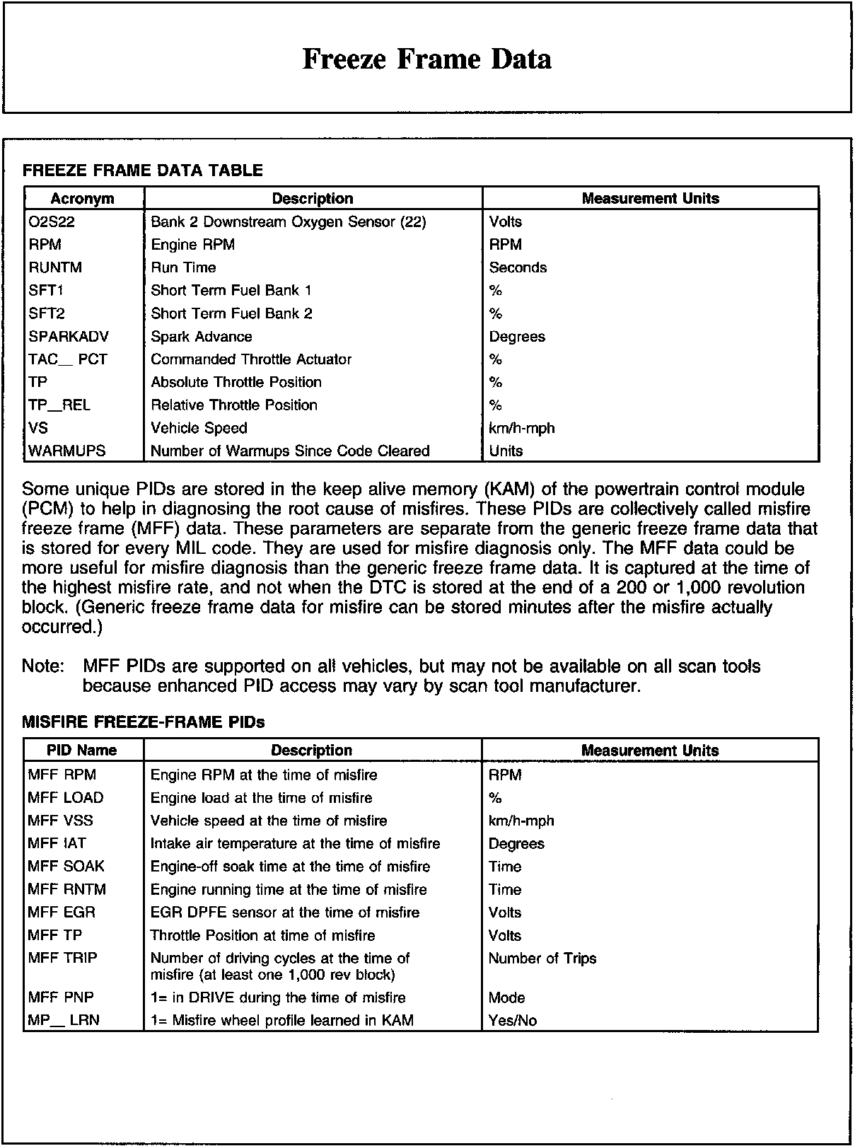 Freeze Frame Data Table And Misfire Freeze-Frame PIDs: