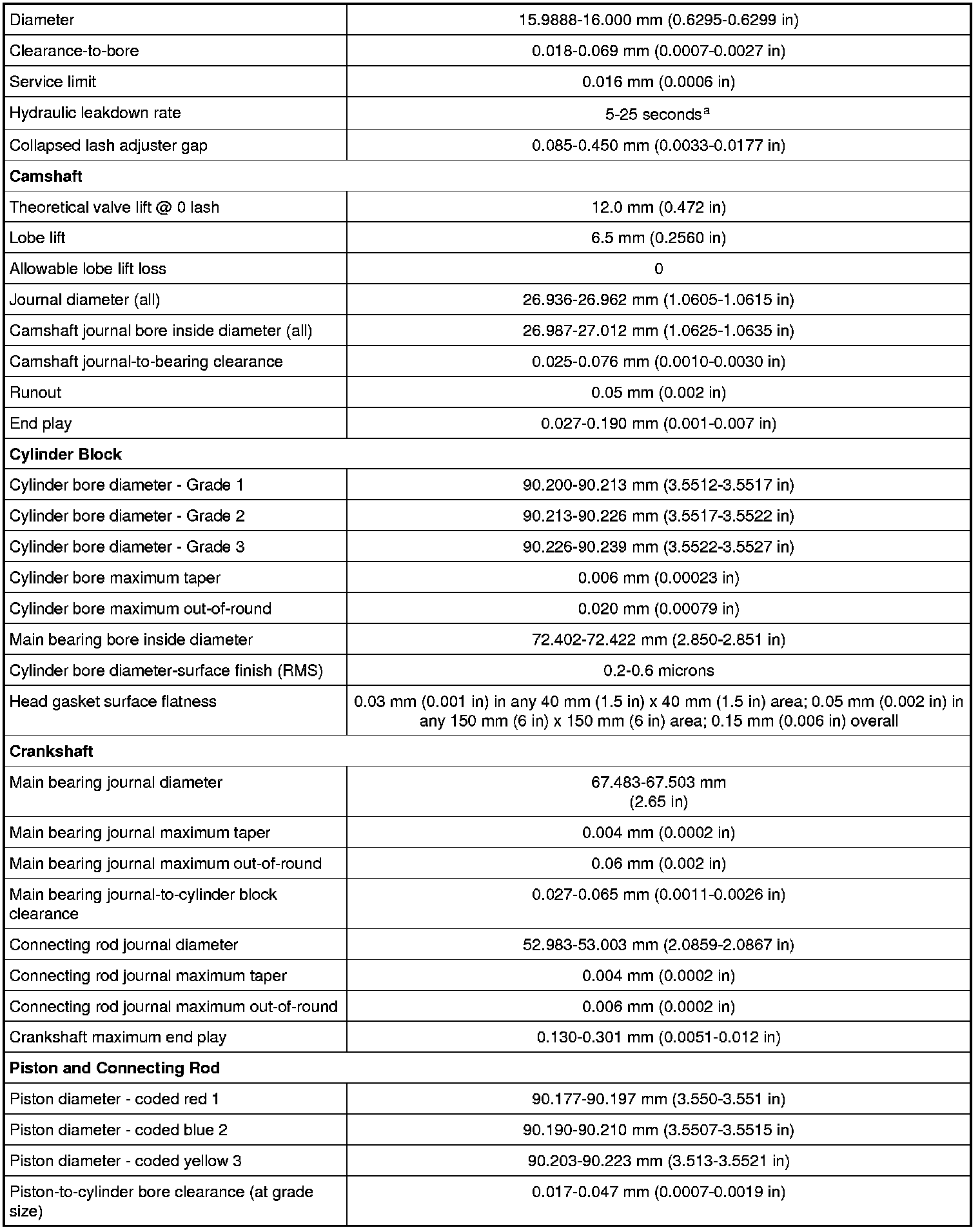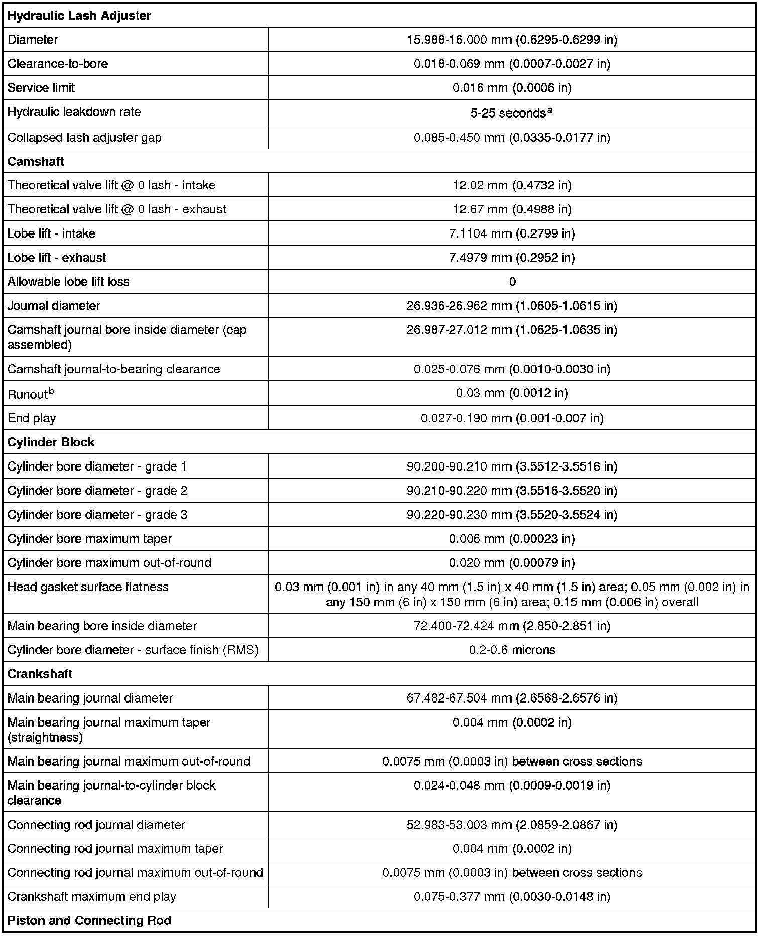 5.4L (Hydraulic Valve Adjuster / Camshaft / Cylinder Block / Crankshaft / Piston And Connecting Rod):