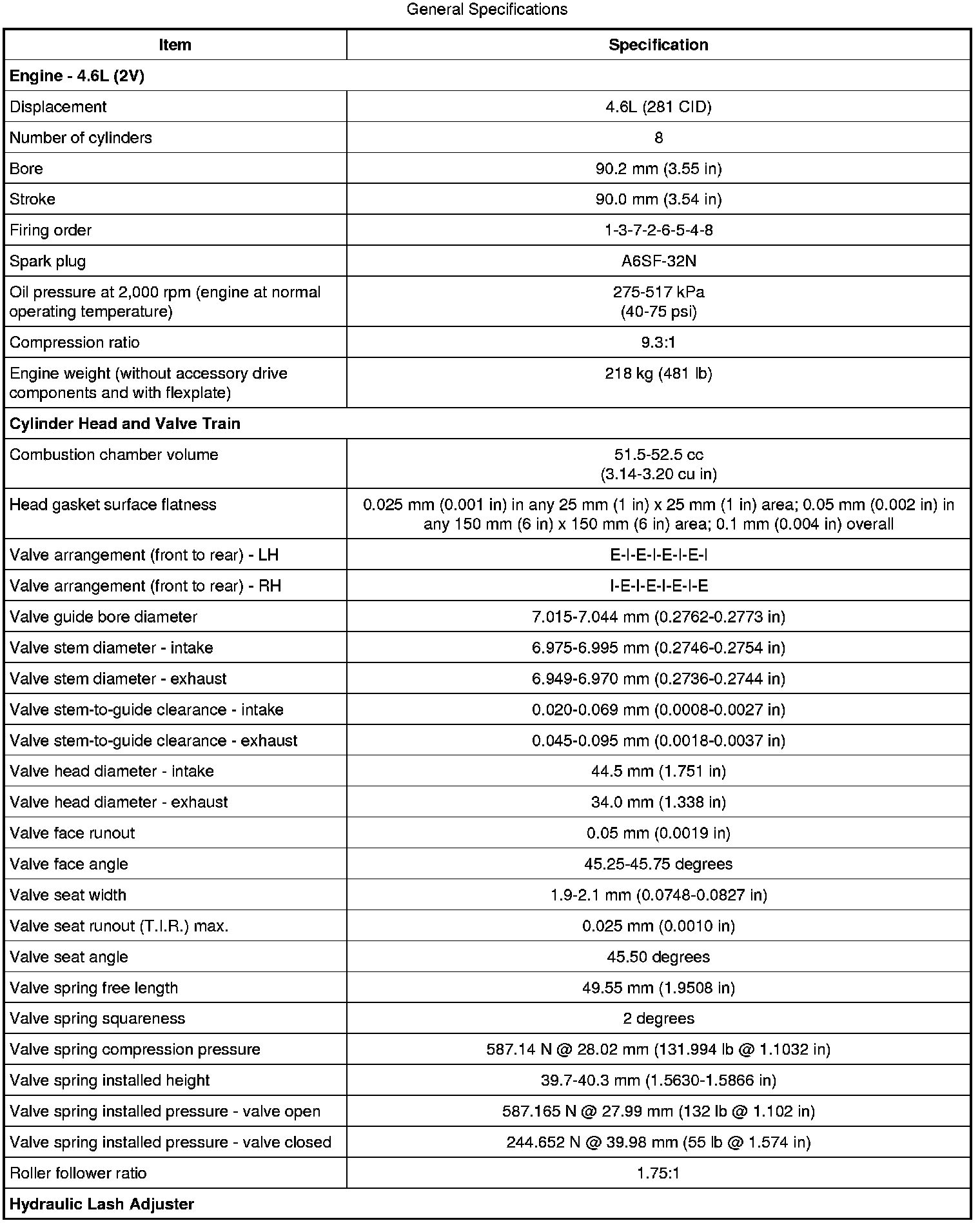 4.6L (Engine / Cylinder Head And Valve Train / Hydraulic Valve Adjuster):