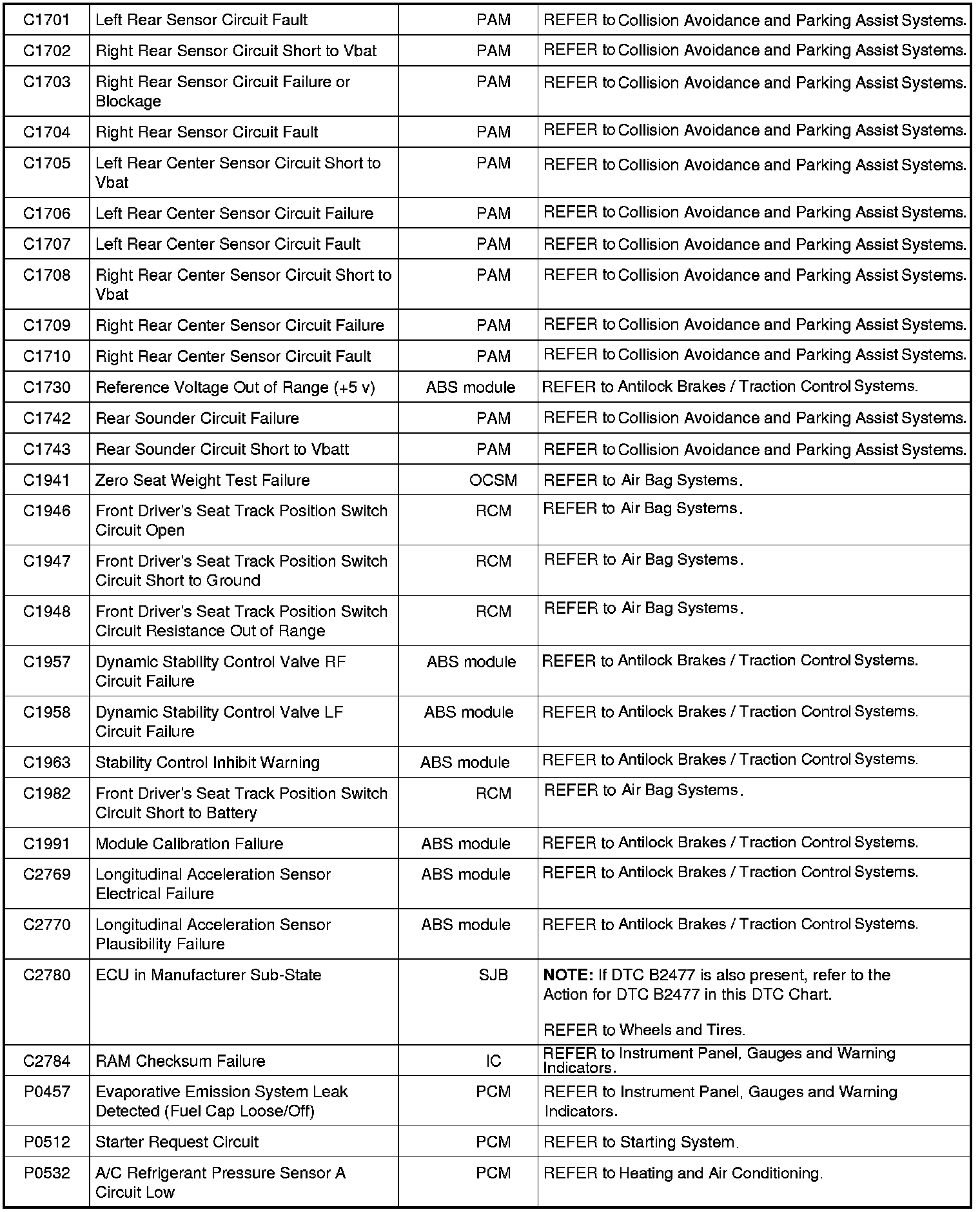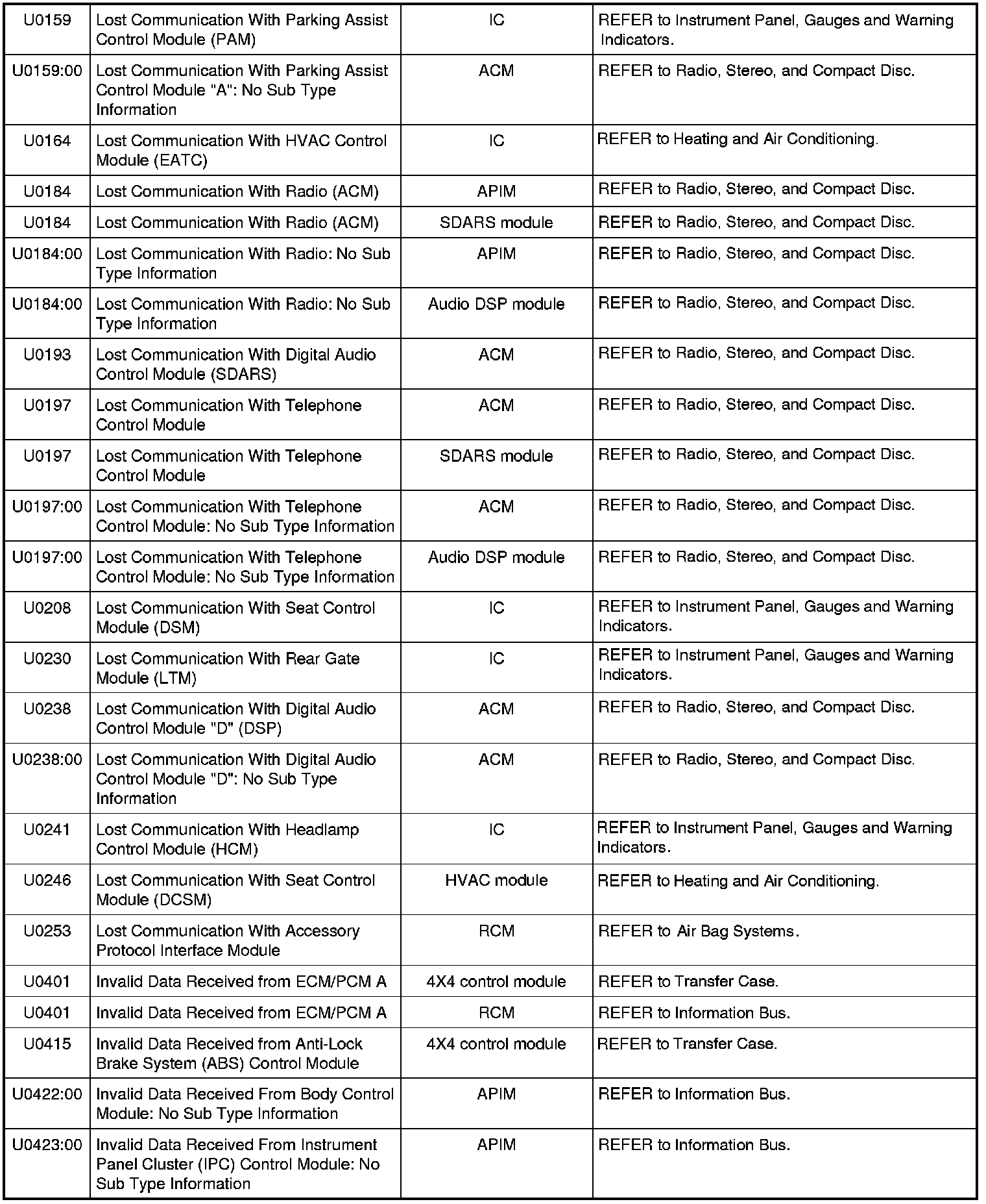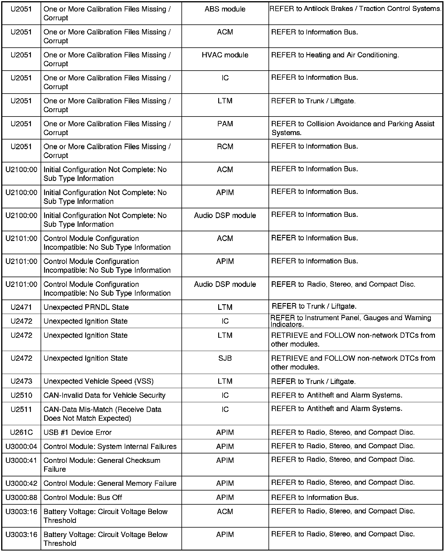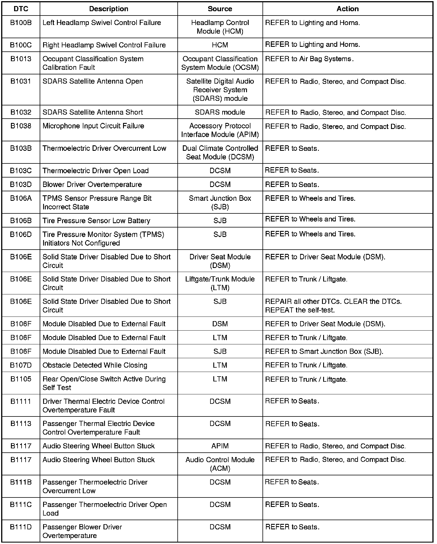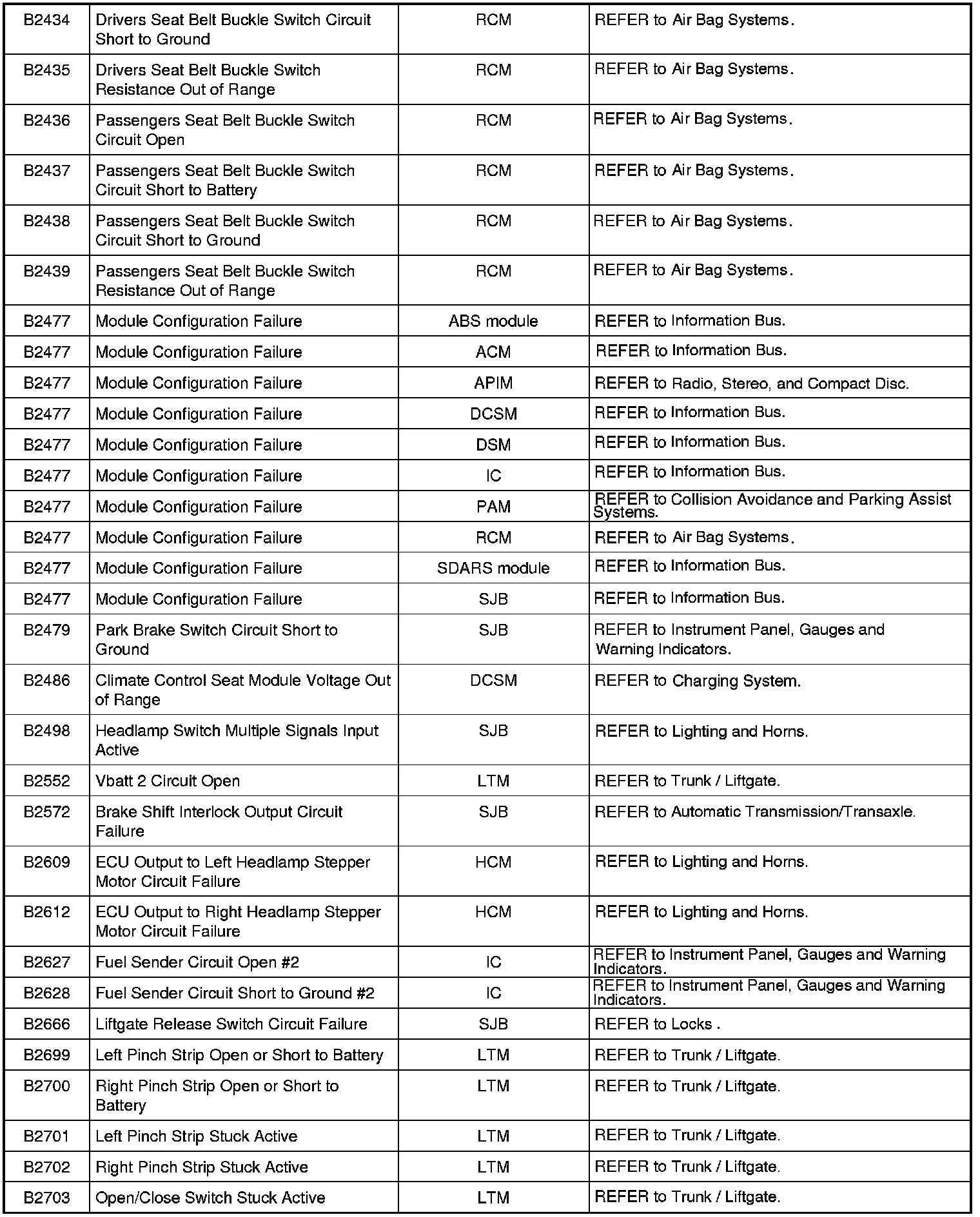 NOTE: Some of these modules utilize a 5-character DTC followed by a 2-character failure-type code. The failure-type code provides information about specific fault conditions such as opens, or shorts to ground. Continuous memory DTCs have an additional 2-character DTC status code suffix to assist in determining DTC history.