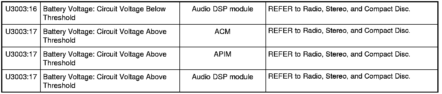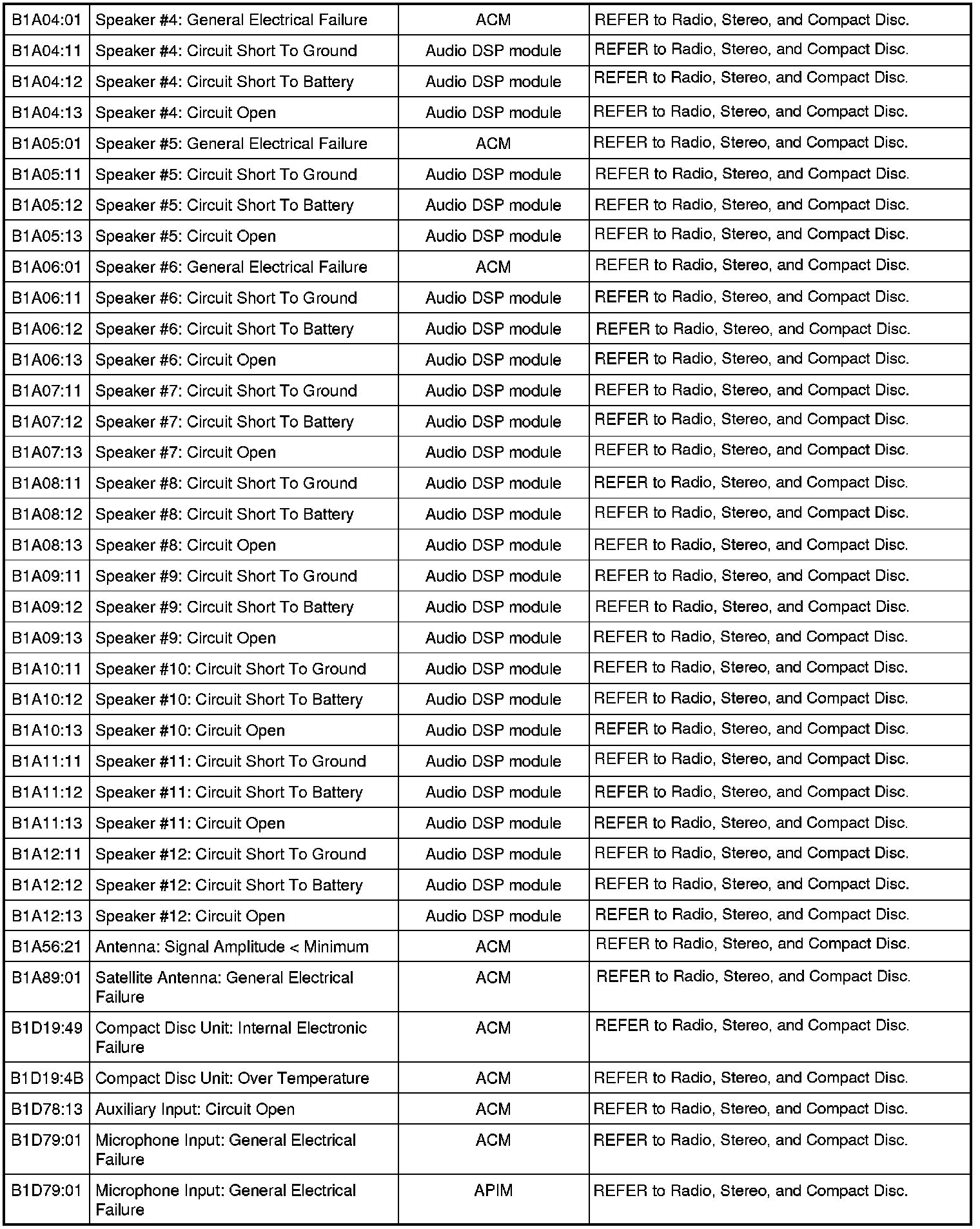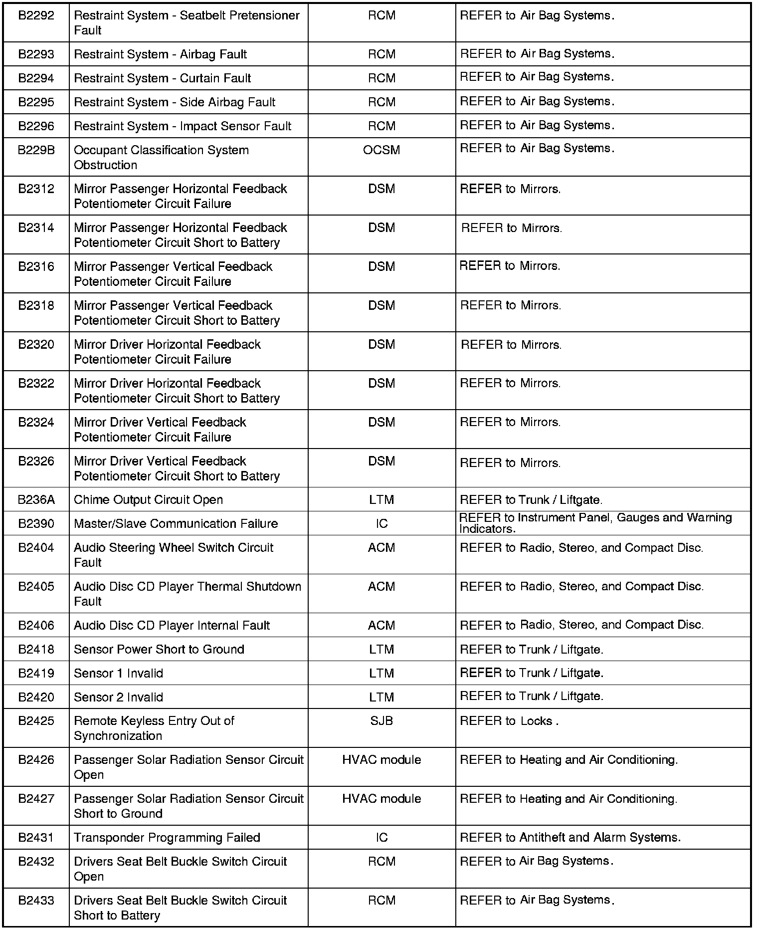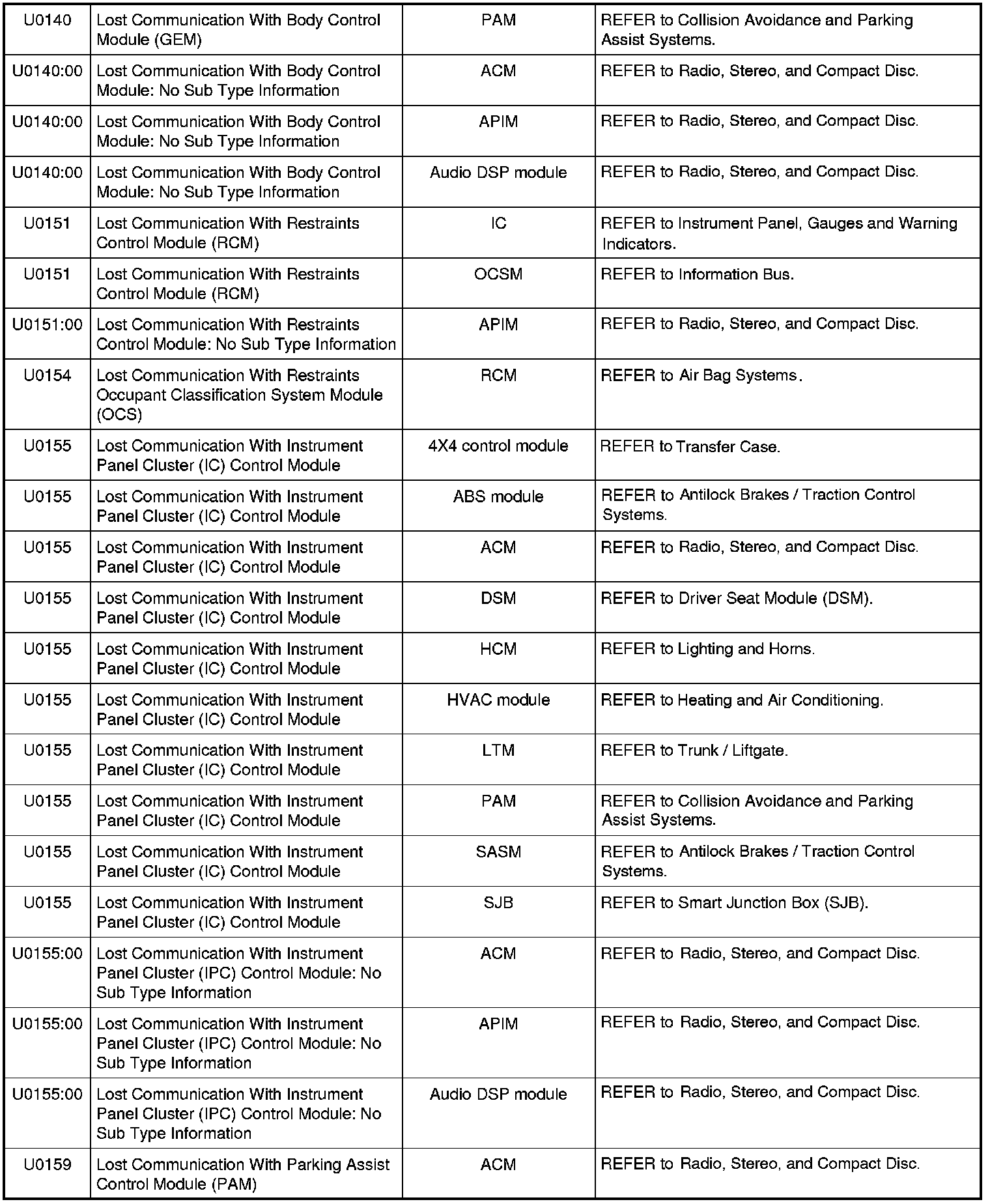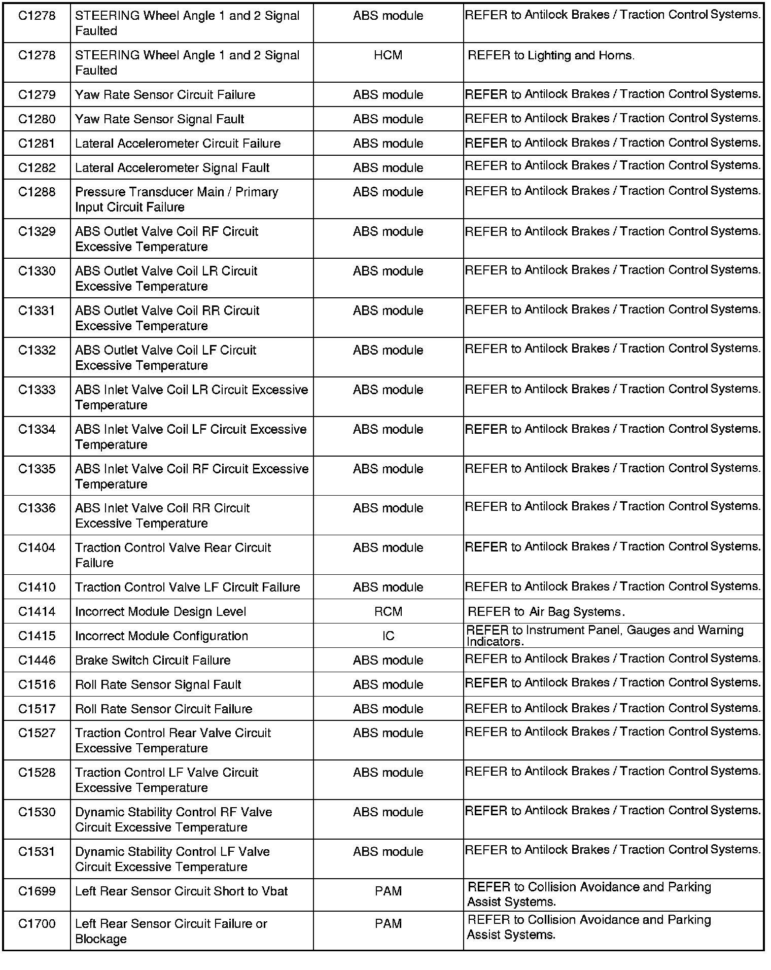 NOTE: Some of these modules utilize a 5-character DTC followed by a 2-character failure-type code. The failure-type code provides information about specific fault conditions such as opens, or shorts to ground. Continuous memory DTCs have an additional 2-character DTC status code suffix to assist in determining DTC history.