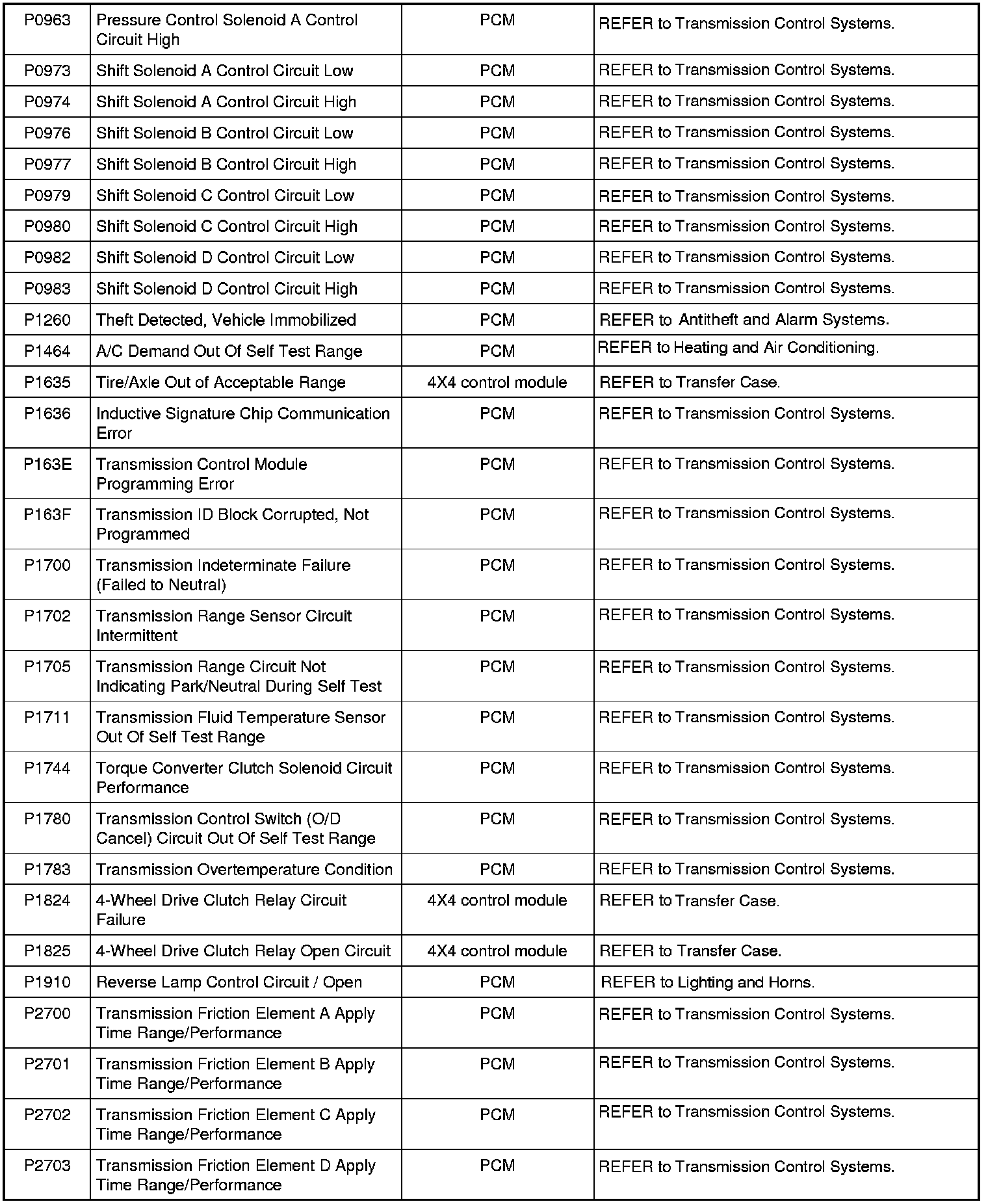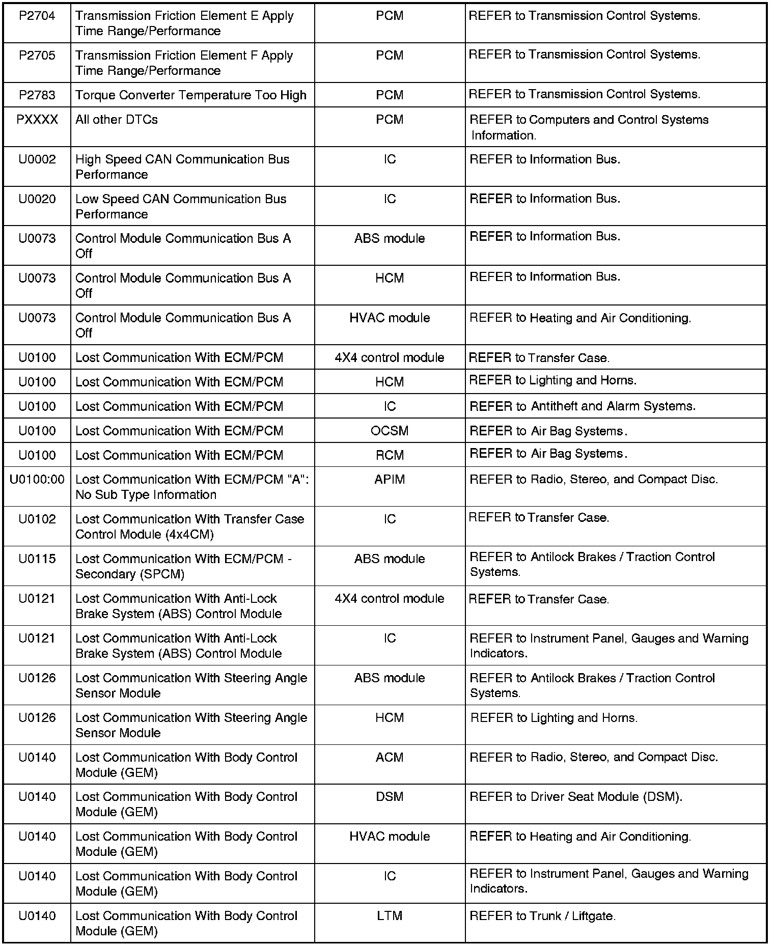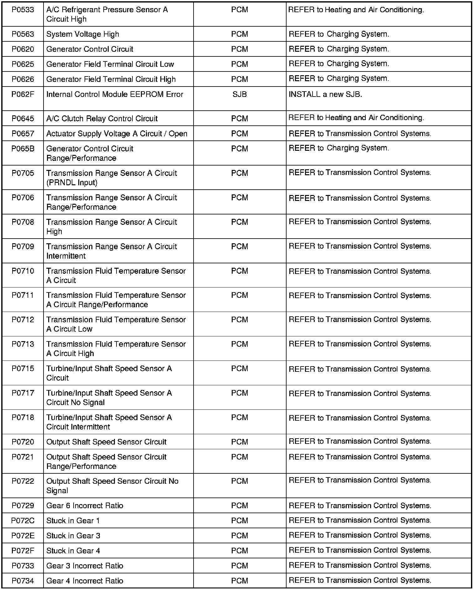 NOTE: Most powertrain (P-code) DTCs are diagnosed in Computers and Control Systems Information. If the P-code retrieved is not listed below, refer to Computers and Control Systems Information to continue diagnostics.