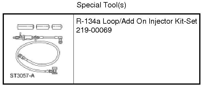 NOTE: If fluorescent leak detection dye is also to be added during A/C charging, the dye may be added to the dye/lubricant injector, from the R-134a Loop/Add On Injector Kit-Set, along with the PAG oil.