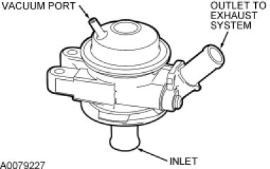 The secondary AIR diverter valve is used with the secondary AIR pump to provide on/off control of air to the exhaust manifold and catalytic converter. When the secondary AIR pump is on and vacuum is supplied to the AIR diverter valve, air passes the integral check valve disk. When the secondary AIR pump is off, and vacuum is removed from the AIR diverter valve, the integral check valve disk is held on the seat and stops air from being drawn into the exhaust system and prevents the back flow of the exhaust into the secondary AIR system.