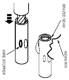 7. If visible, be sure to place the brazed seam toward the indenter.