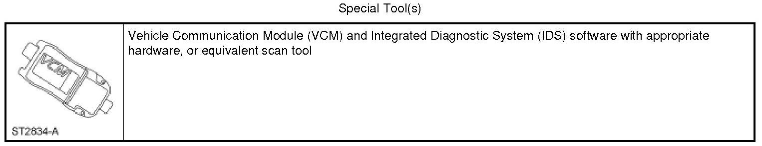 NOTE: This procedure erases all programmed ignition keys from the vehicle memory and the vehicle does not start until 2 keys are programmed to the vehicle. This procedure also erases the Integrated Keyhead Transmitter (IKT) identification codes (TICs) from the Smart Junction Box (SJB), preventing the erased IKT from operating the Remote Keyless Entry (RKE) functions on the vehicle.