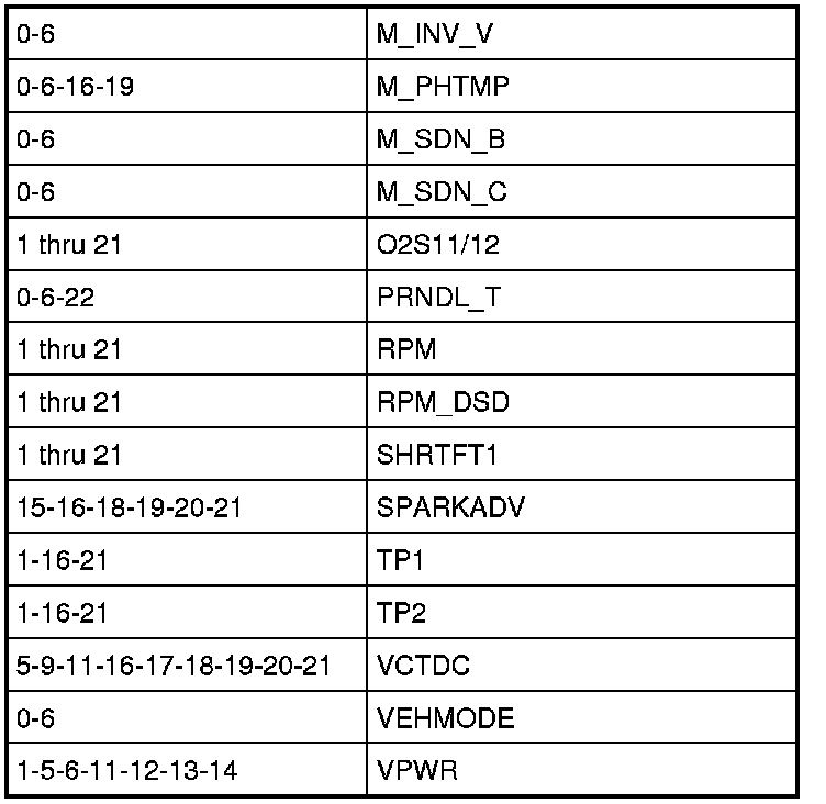 The listing reflects PIDS and/or measured values which may reveal a possible concern within each system shown. Match the category number with the related PID/measured signal and go to the Typical Diagnostic Reference Value Charts.