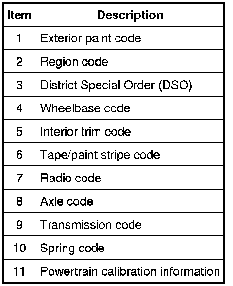 Powertrain calibration information is printed in the lower right corner of the VC label. Only base calibration information is printed. Revision levels will not appear, however, they can be obtained through a scan tool using the most current software revision.