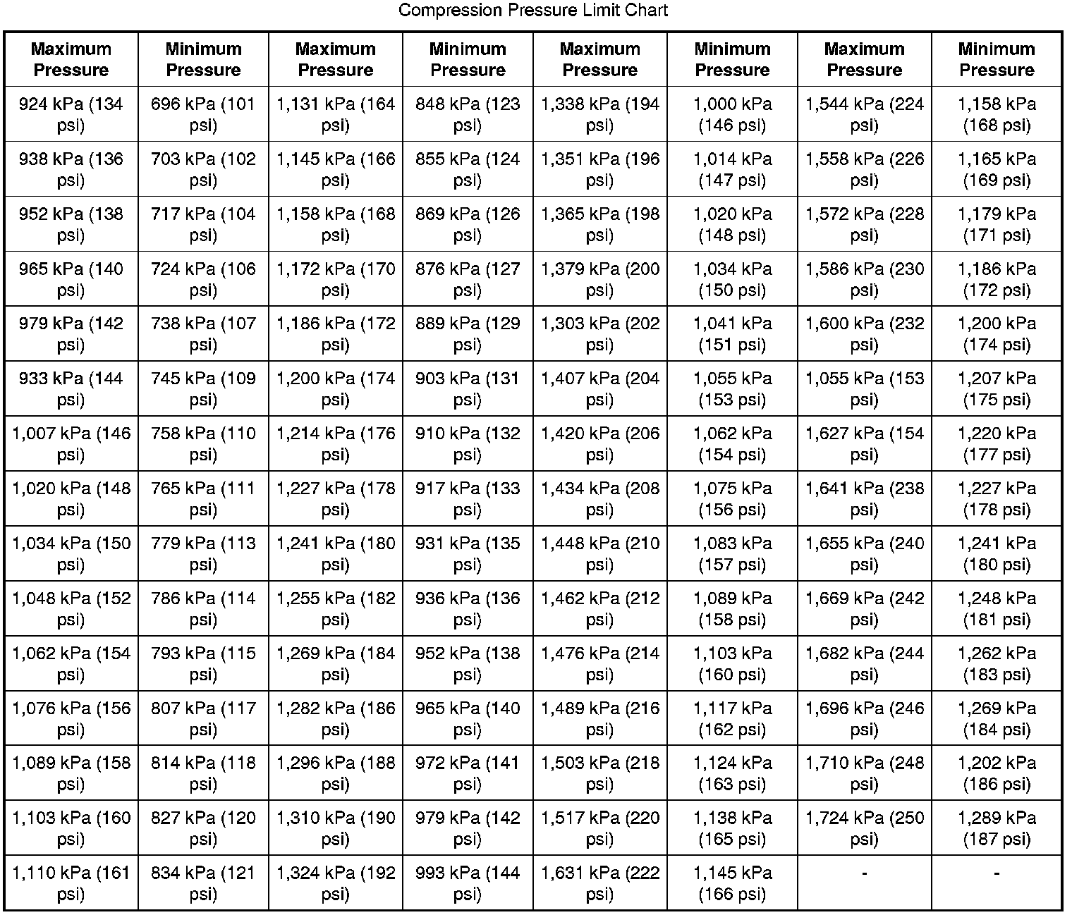 Use the Compression Pressure Limit Chart when checking cylinder compression so the lowest reading is within 75% of the highest reading.