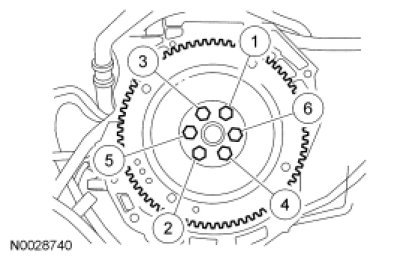 Install the flexplate and the bolts. Tighten the bolts in the sequence shown in 3 stages: