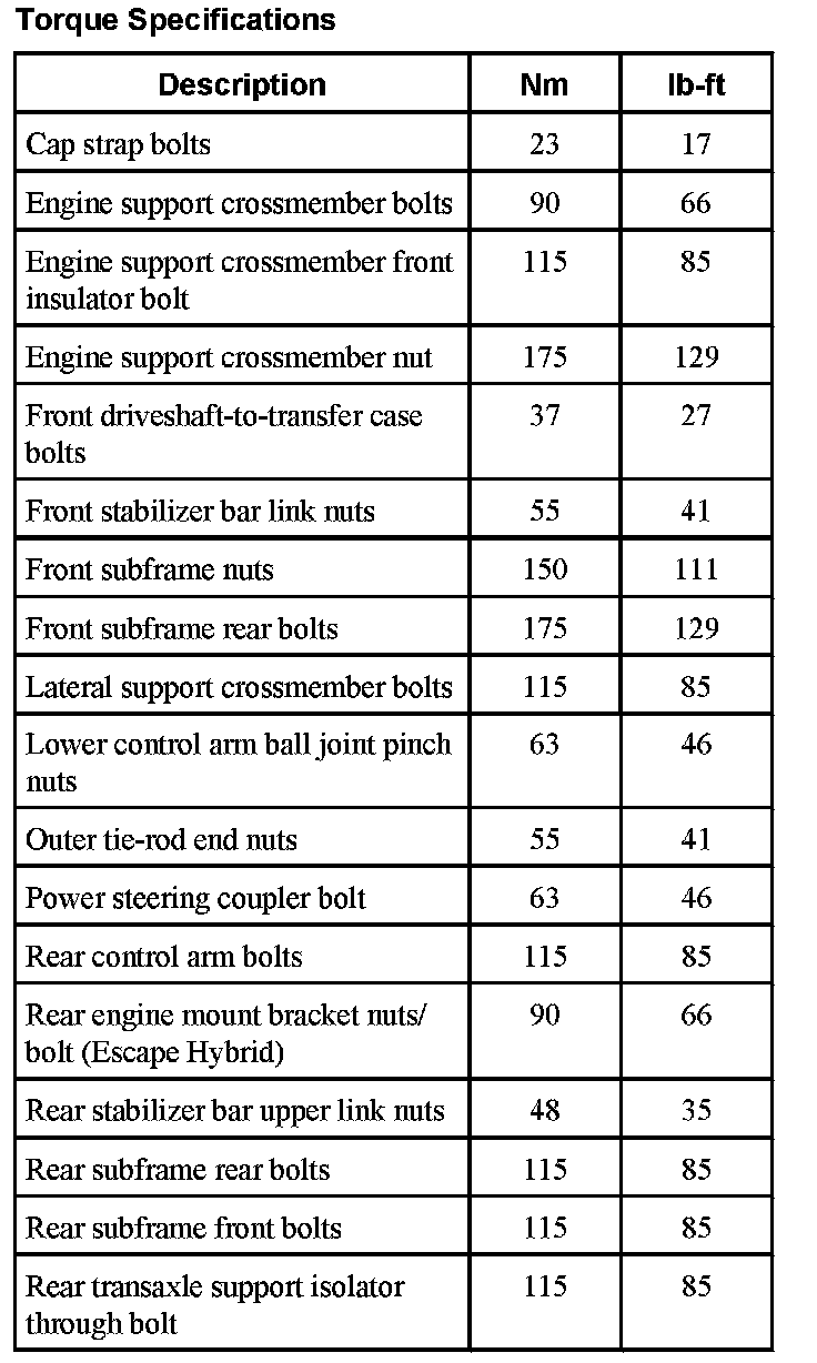 Torque Specifications: