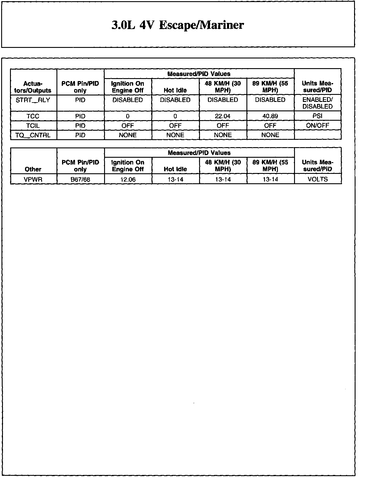 Home >> Ford >> 2009 >> Escape 2WD V6-3.0L >> Repair and Diagnosis >> Powertrain Management >> Computers and Control Systems >> Testing and Inspection >> Scan Tool Testing and Procedures >> Typical Diagnostic Reference Values