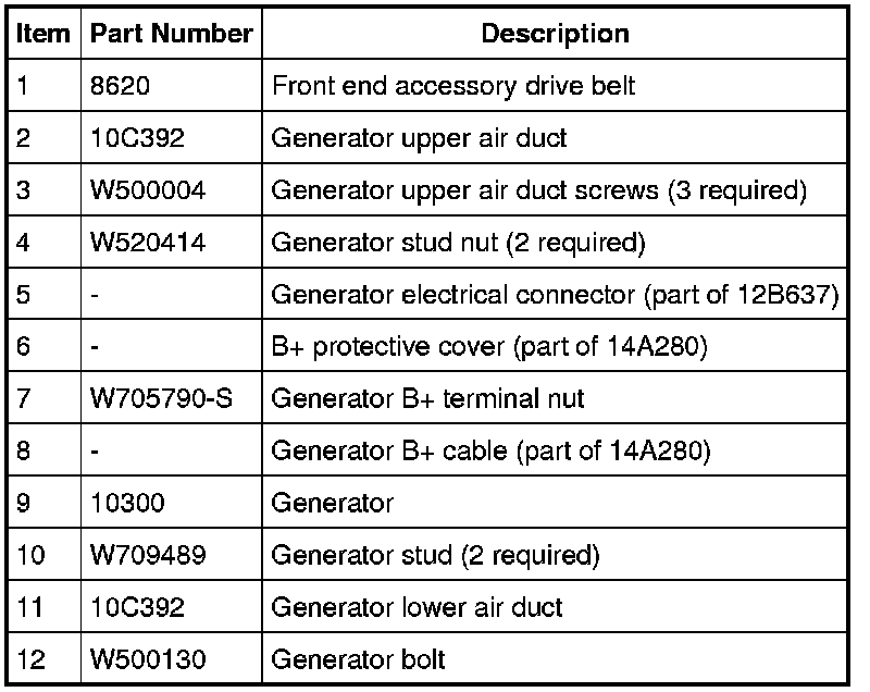 8. Working from the top of the vehicle, press the locking tab to release the generator lower air duct from the generator and remove the lower air duct.