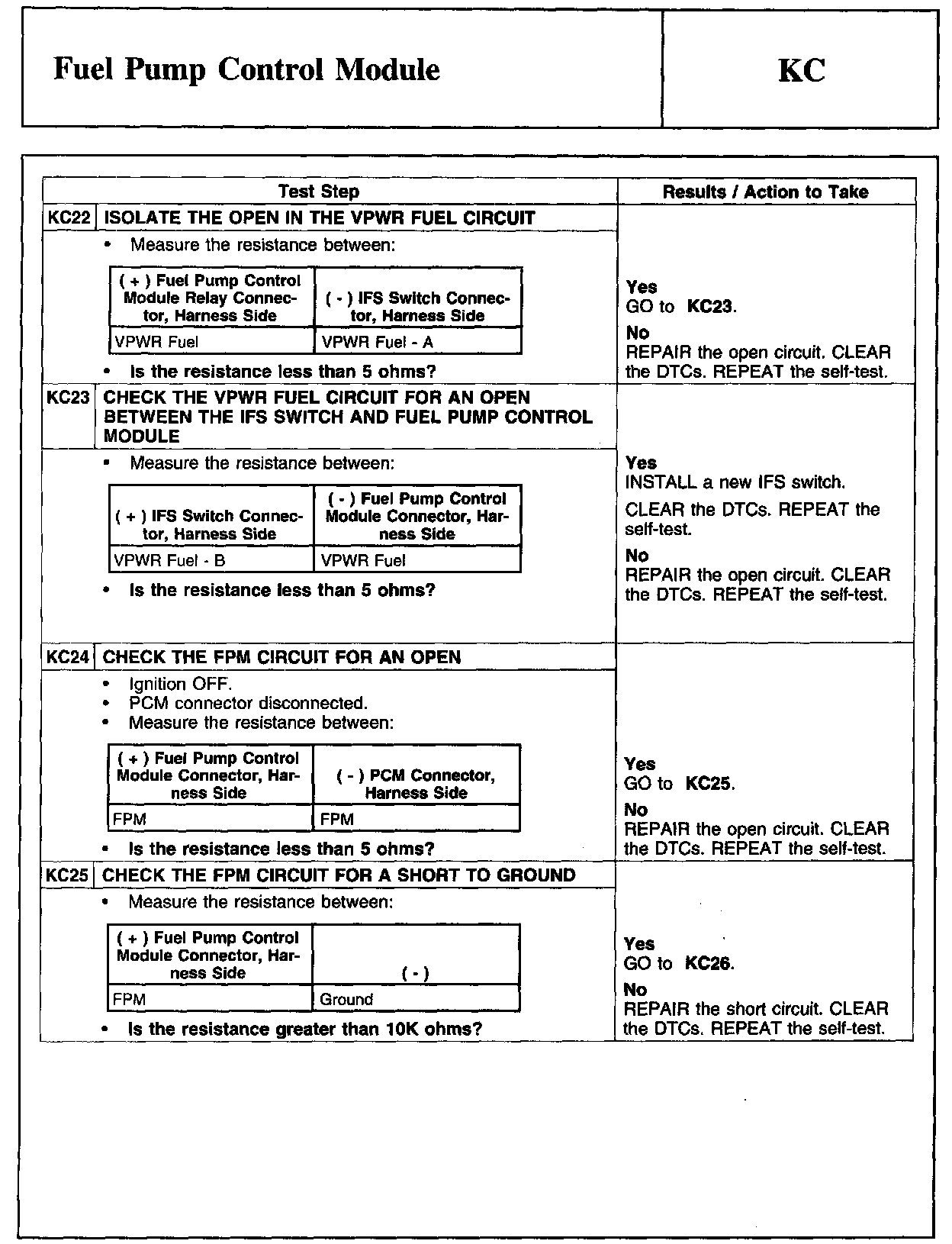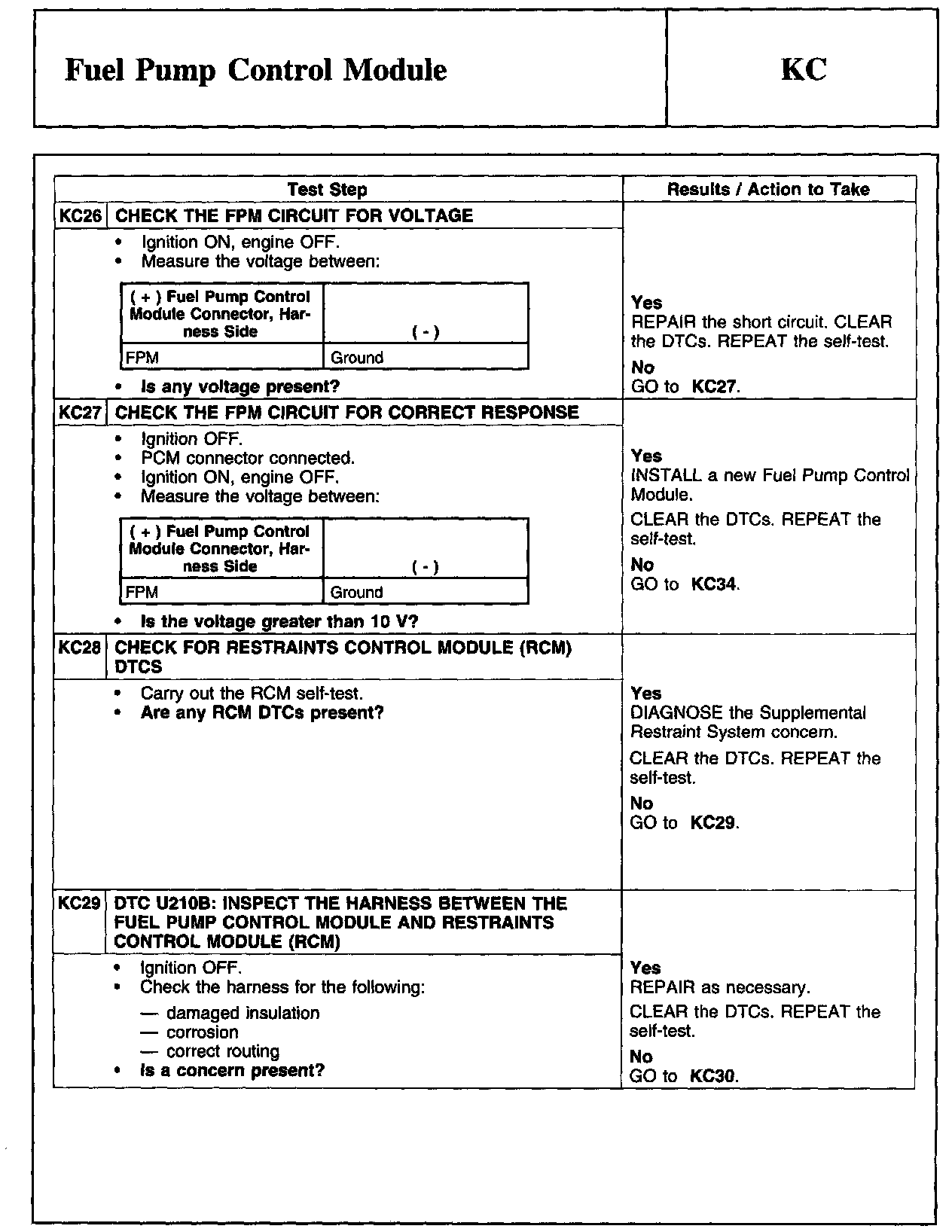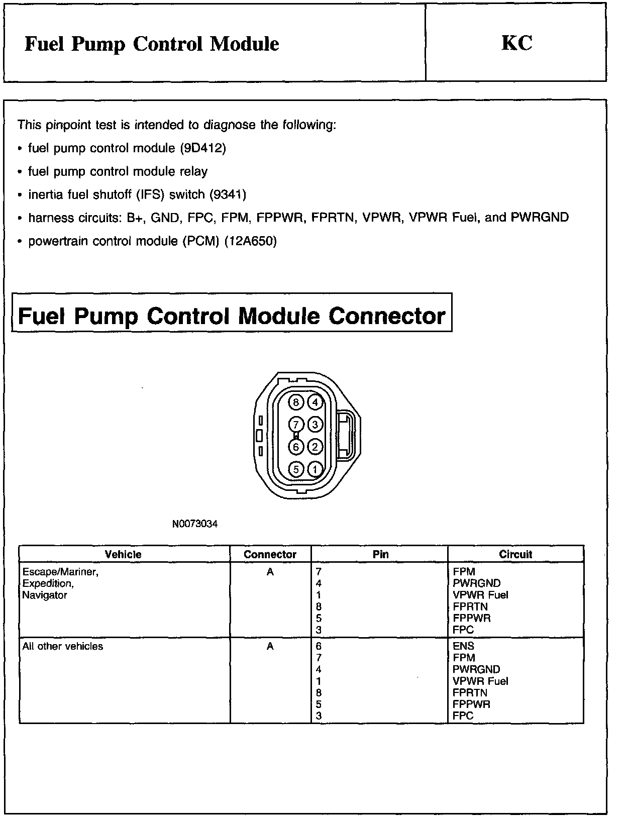 PINPOINT TEST KC: FUEL PUMP CONTROL MODULEFuel Pump Control Module Connector: