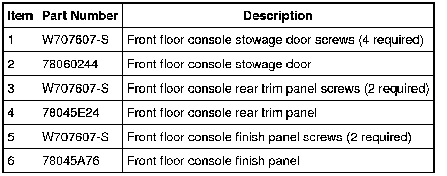 3. Remove the 2 screws and the front floor console rear trim panel.