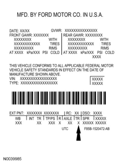 Powertrain calibration information is printed in the lower right corner of the VC label. Only base calibration information is printed. Revision levels will not appear, however, they can be obtained through a scan tool using the most current software revision.