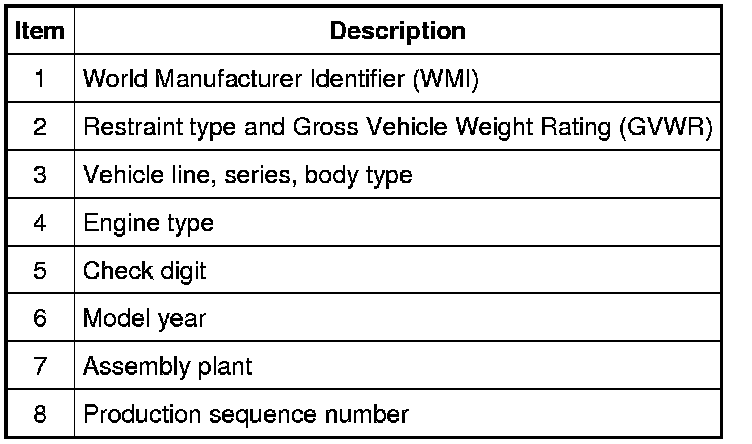 The fourth VIN position is the restraint brake type and Gross Vehicle Weight Rating (GVWR) code.