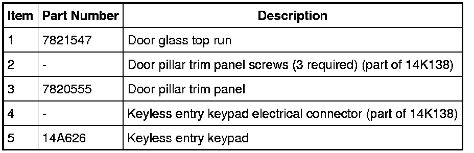 Home >> Ford >> 2009 >> Explorer 2WD V8-4.6L >> Repair and Diagnosis >> Body and Frame >> Locks >> Keyless Entry >> Keyless Entry Key-Pad >> Service and Repair