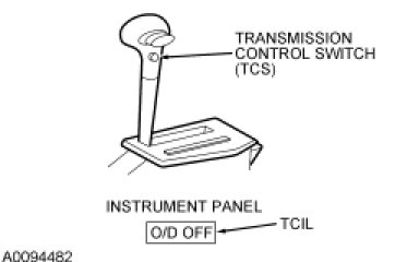 The TCS signals the PCM with VPWR whenever the TCS is pressed. On vehicles with this feature, the transmission control indicator lamp (TCIL) illuminates when the TCS is cycled to disengage overdrive.