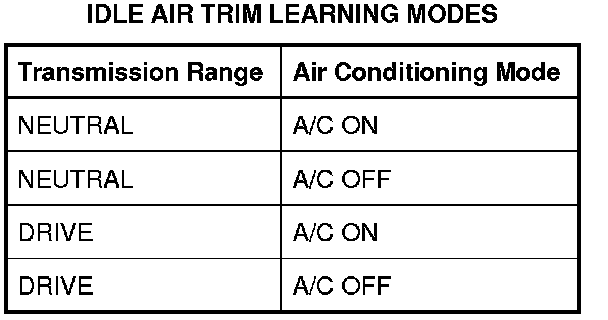 Idle Air Trim Learning Modes: