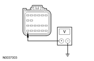 - Measure the voltage between the RCM C310a-24, circuit CBP17 (BN/GN), harness side and ground.