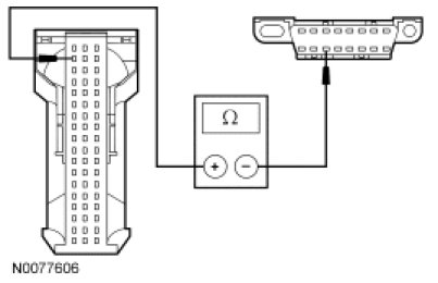 - Measure the resistance between the APIM C3342-16, circuit VDB06 (GY/OG), harness side and the DLC C251-3, circuit VDB06 (GY/OG), harness side.