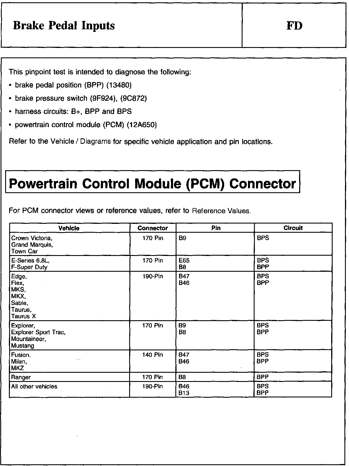 PINPOINT TEST FD: BRAKE PEDAL INPUTS