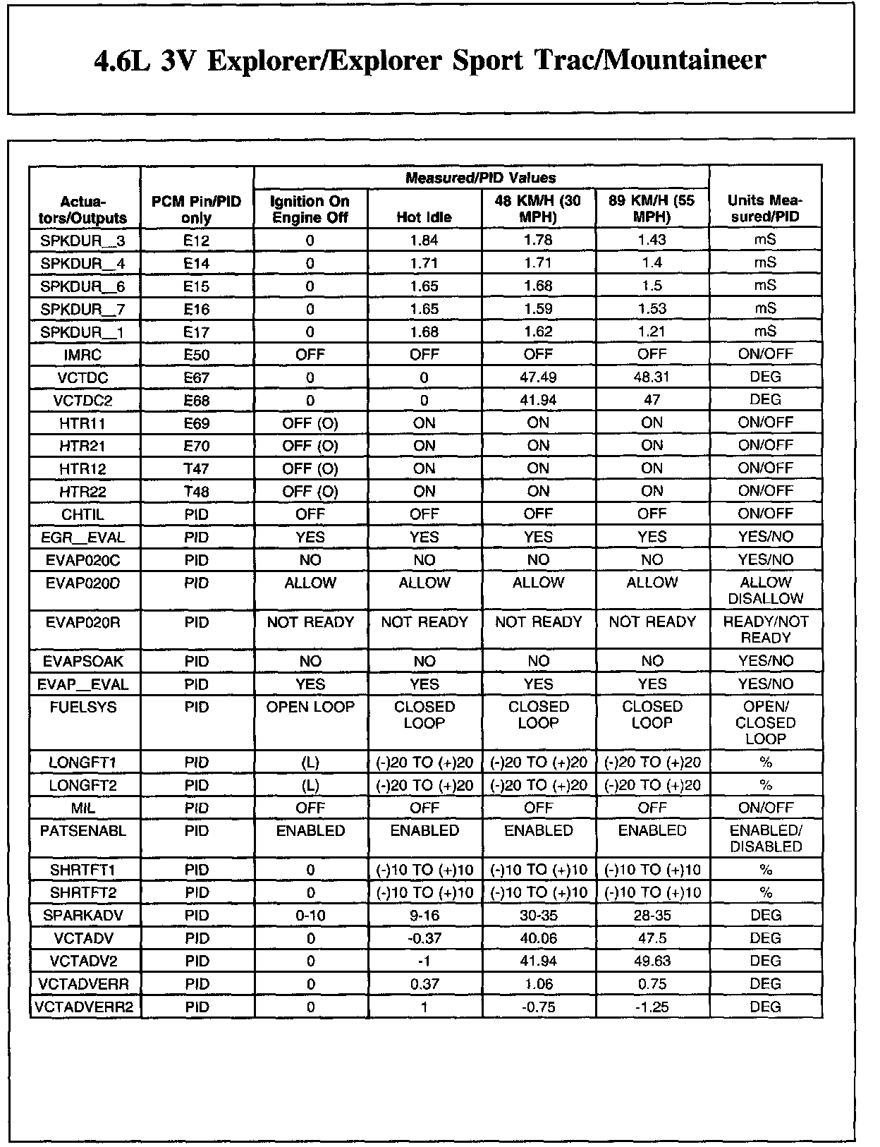 Home >> Ford >> 2009 >> Explorer 2WD V8-4.6L >> Repair and Diagnosis >> Powertrain Management >> Computers and Control Systems >> Testing and Inspection >> Scan Tool Testing and Procedures >> Typical Diagnostic Reference Values