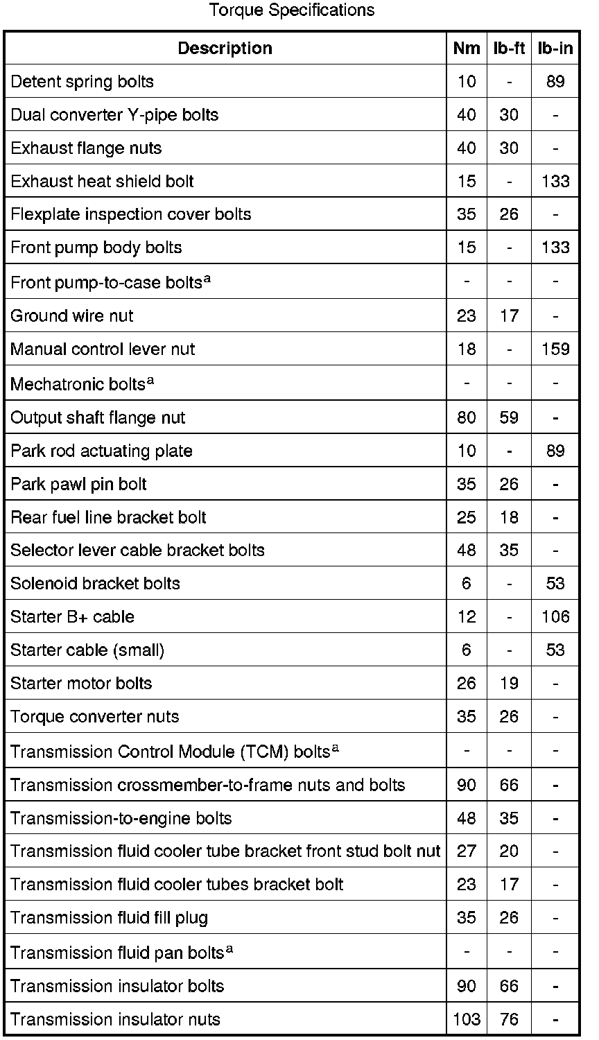 Torque Specifications