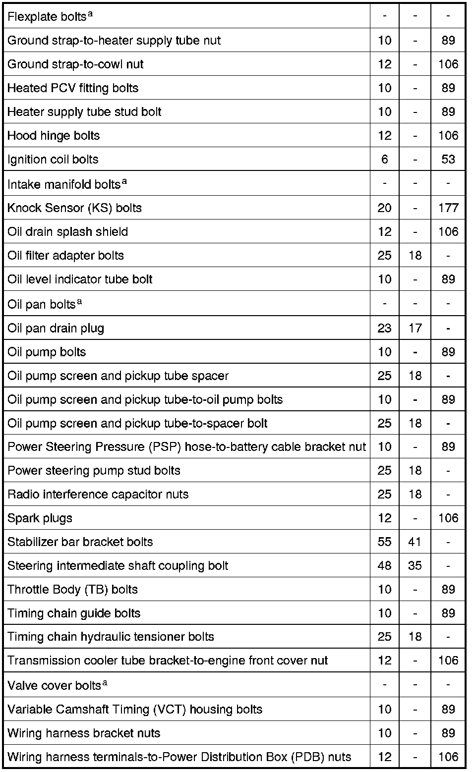 Torque Specifications