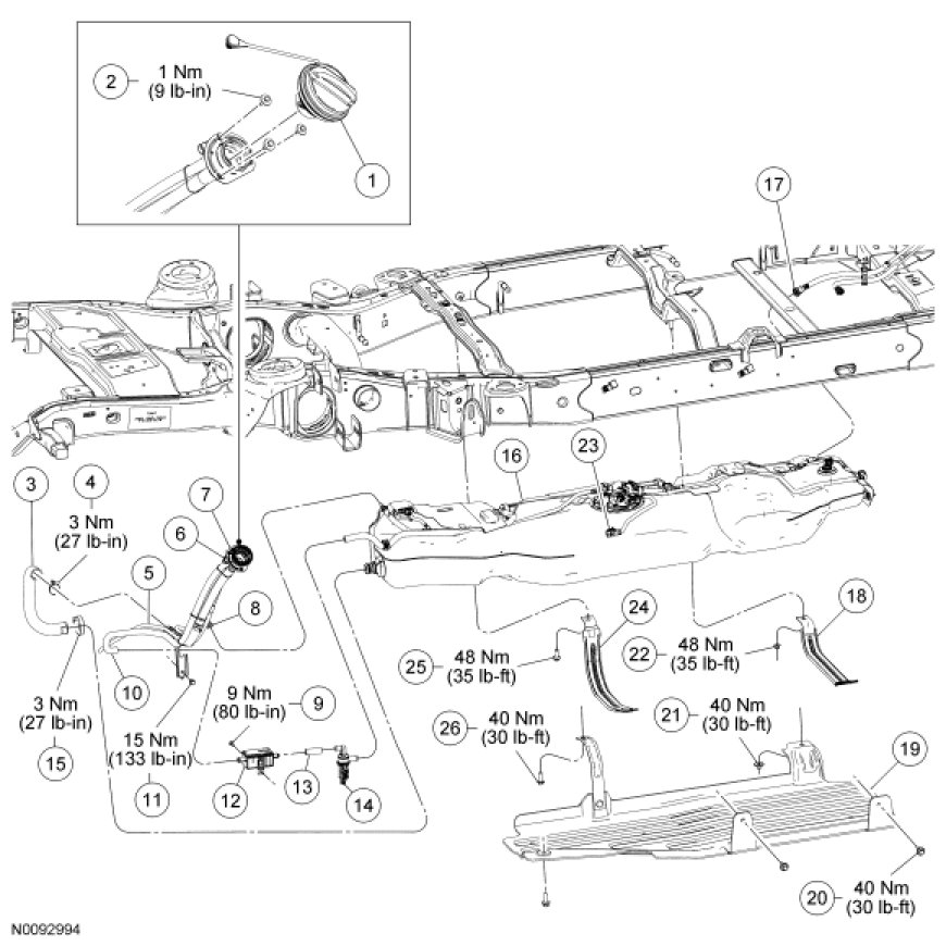 Fuel Tank and Filler Pipe - Exploded View