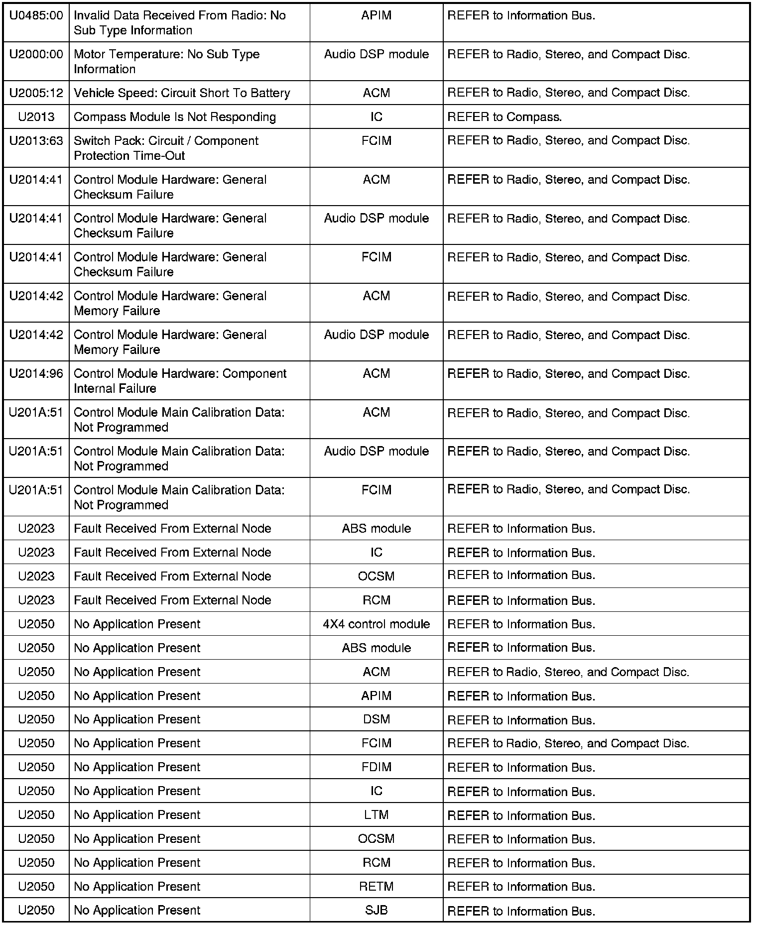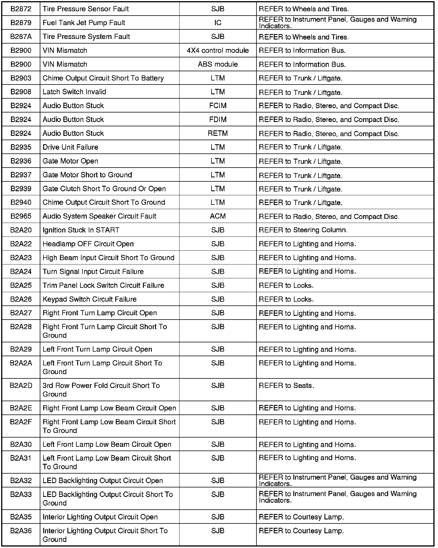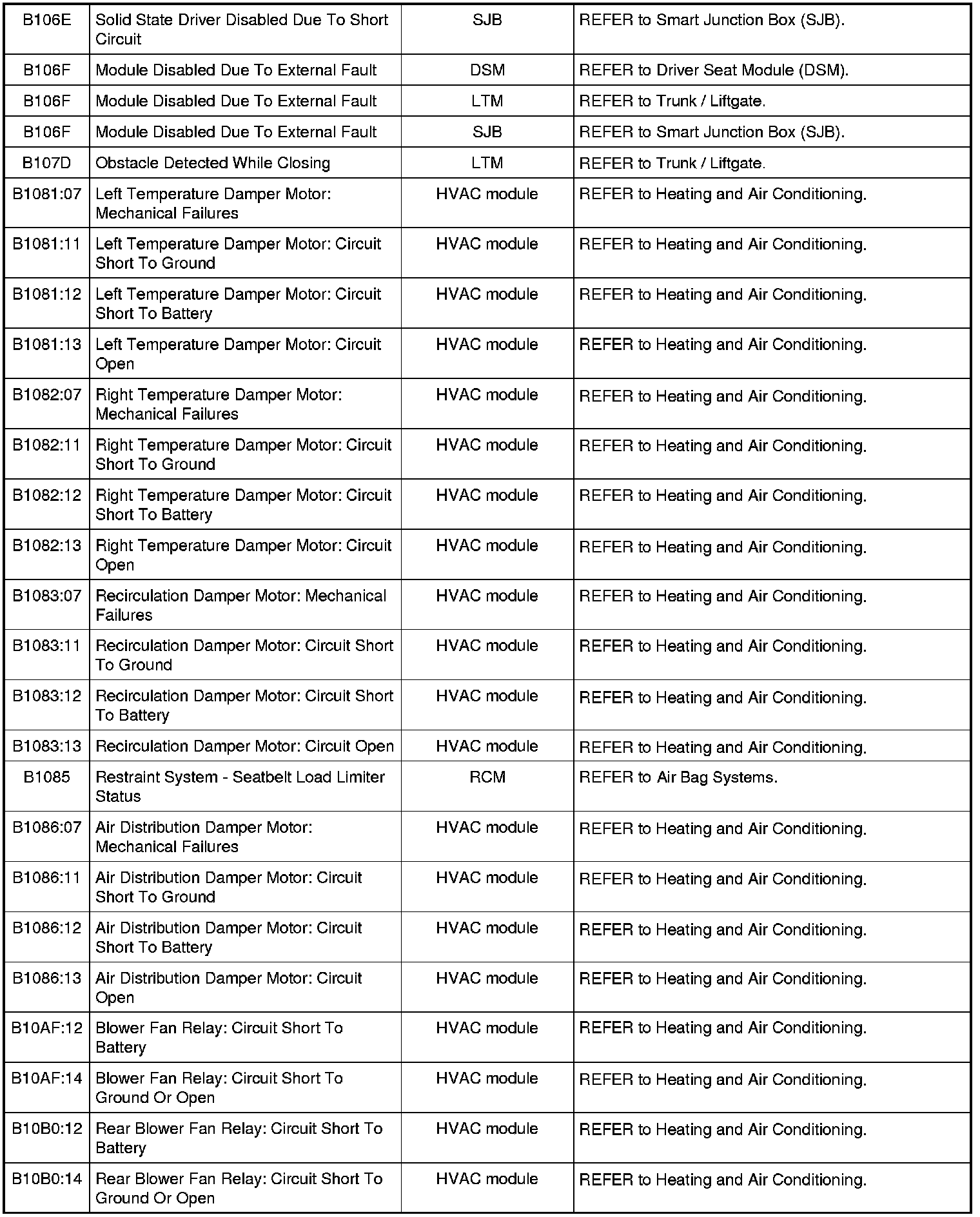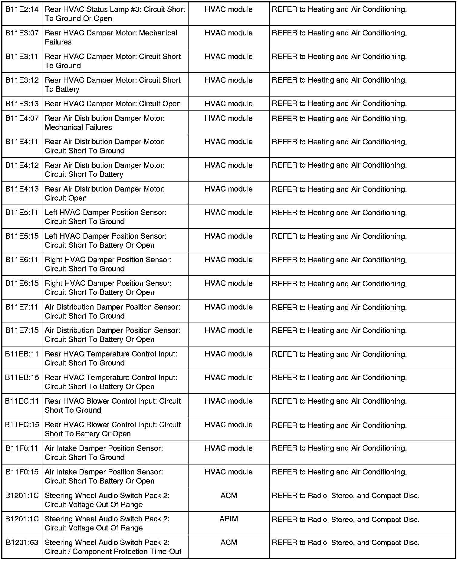 NOTE: Some of these modules utilize a 5-character DTC followed by a 2-character failure-type code. The failure-type code provides information about specific fault conditions such as opens, or shorts to ground. Continuous memory DTCs have an additional 2-character DTC status code suffix to assist in determining DTC history.