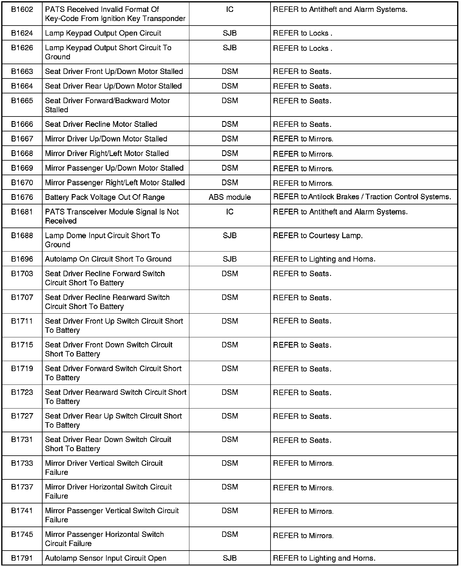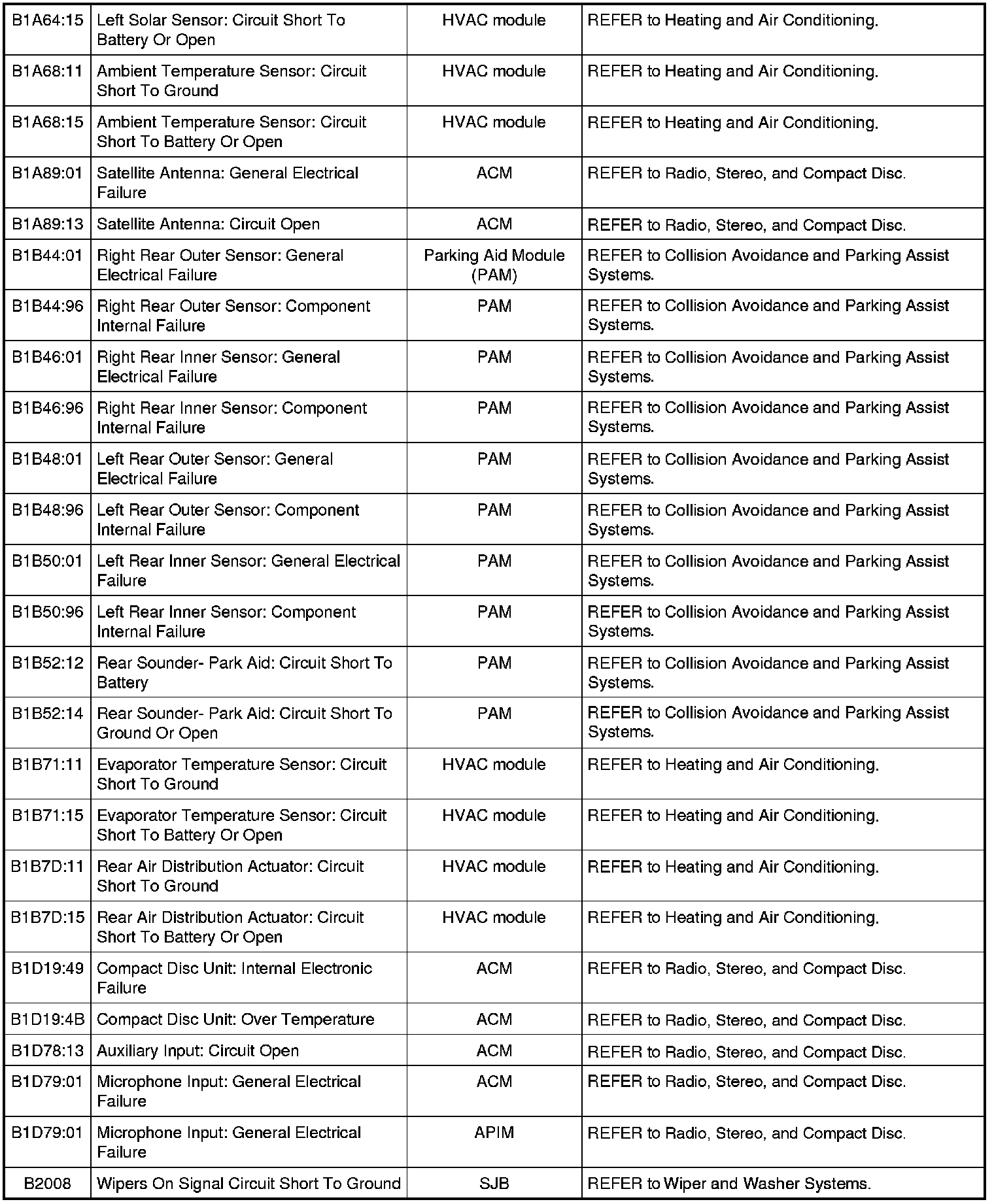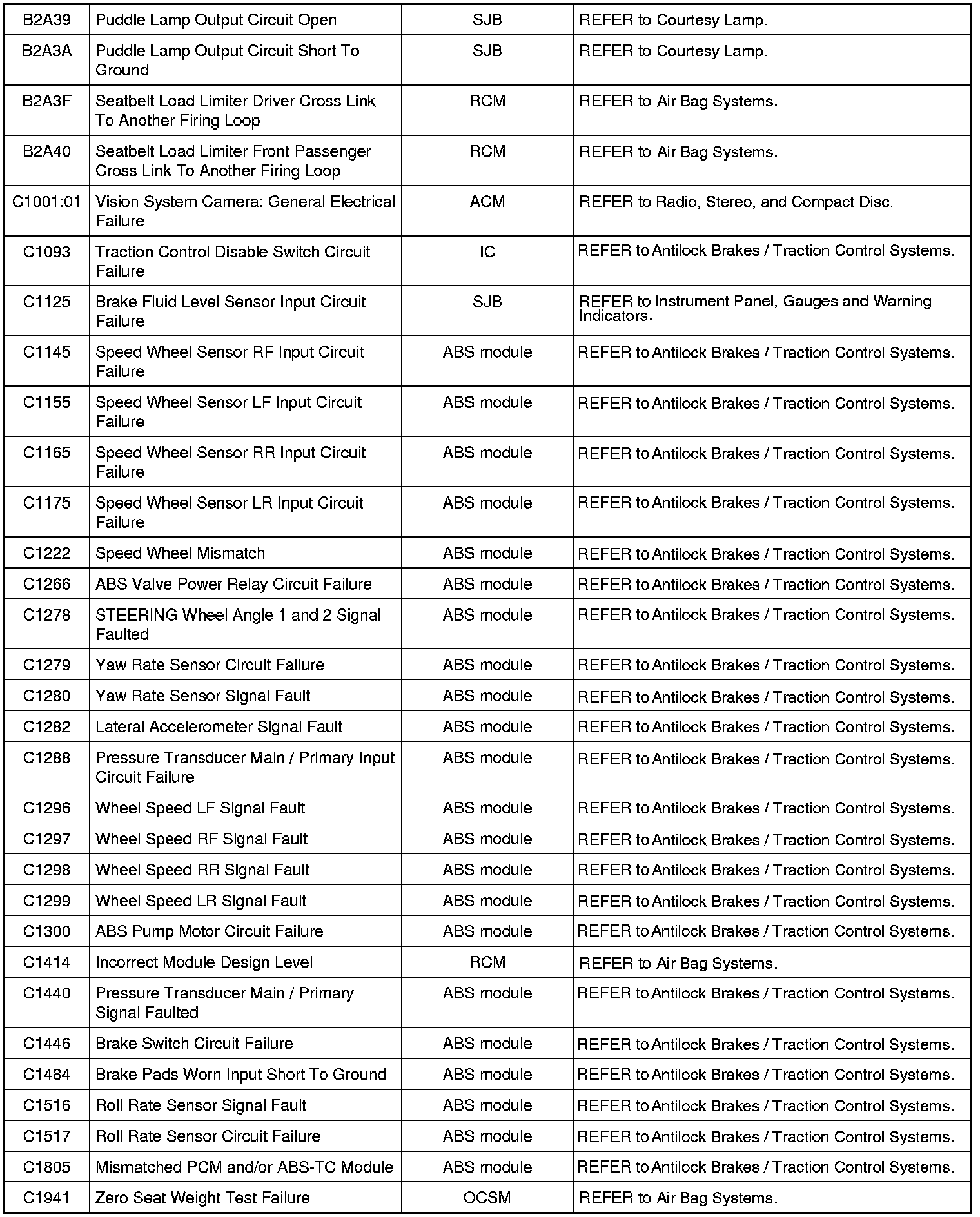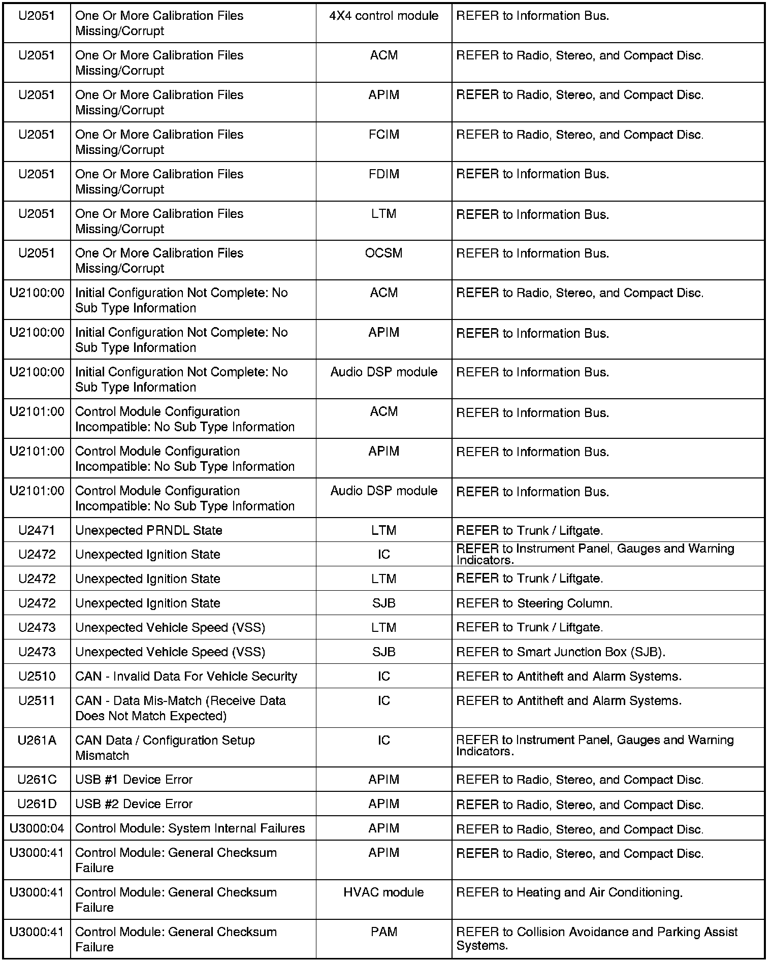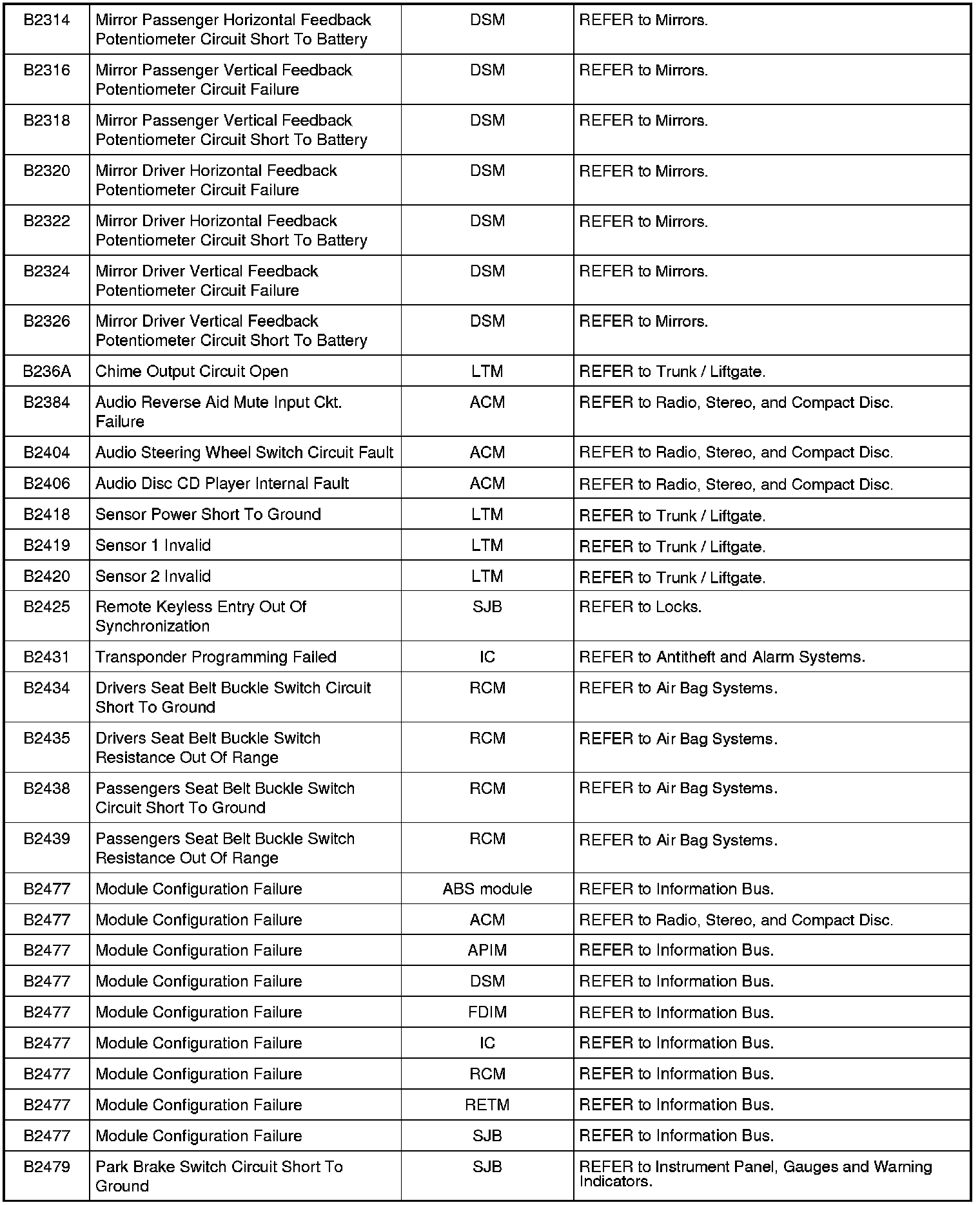 NOTE: Some of these modules utilize a 5-character DTC followed by a 2-character failure-type code. The failure-type code provides information about specific fault conditions such as opens, or shorts to ground. Continuous memory DTCs have an additional 2-character DTC status code suffix to assist in determining DTC history.